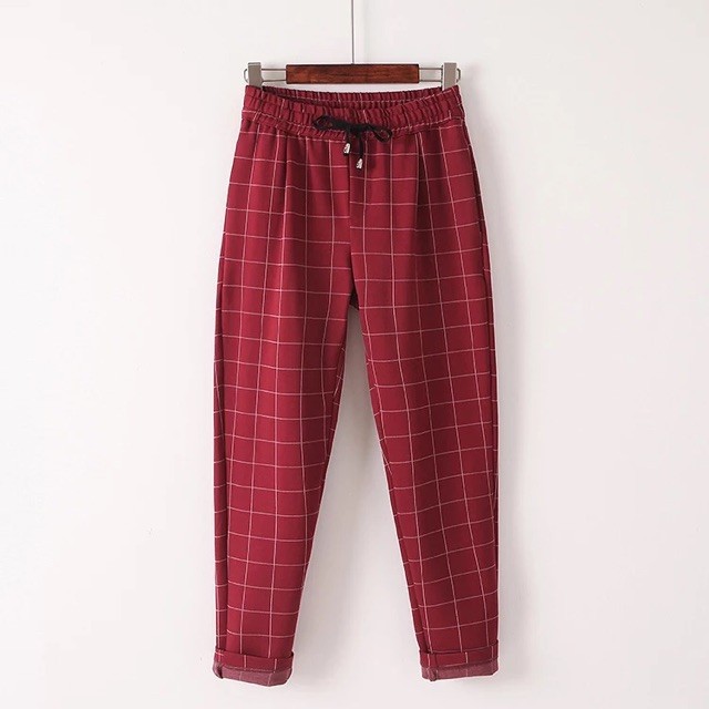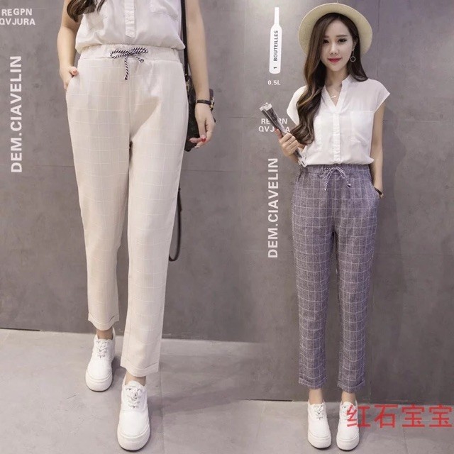Ginza6-FJ<Plus`XD$size Korean Garter Waist Checkered Candy Pants for women fits 27-34}Tg}waistline^