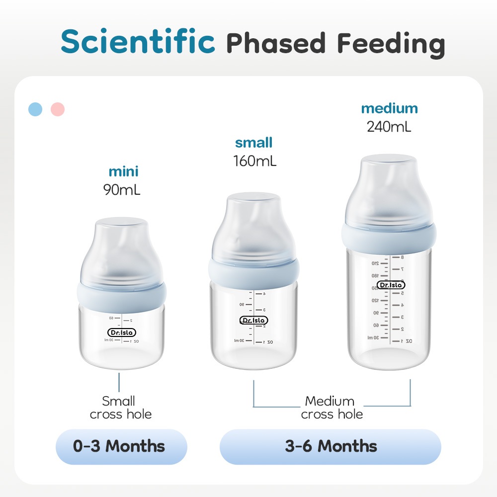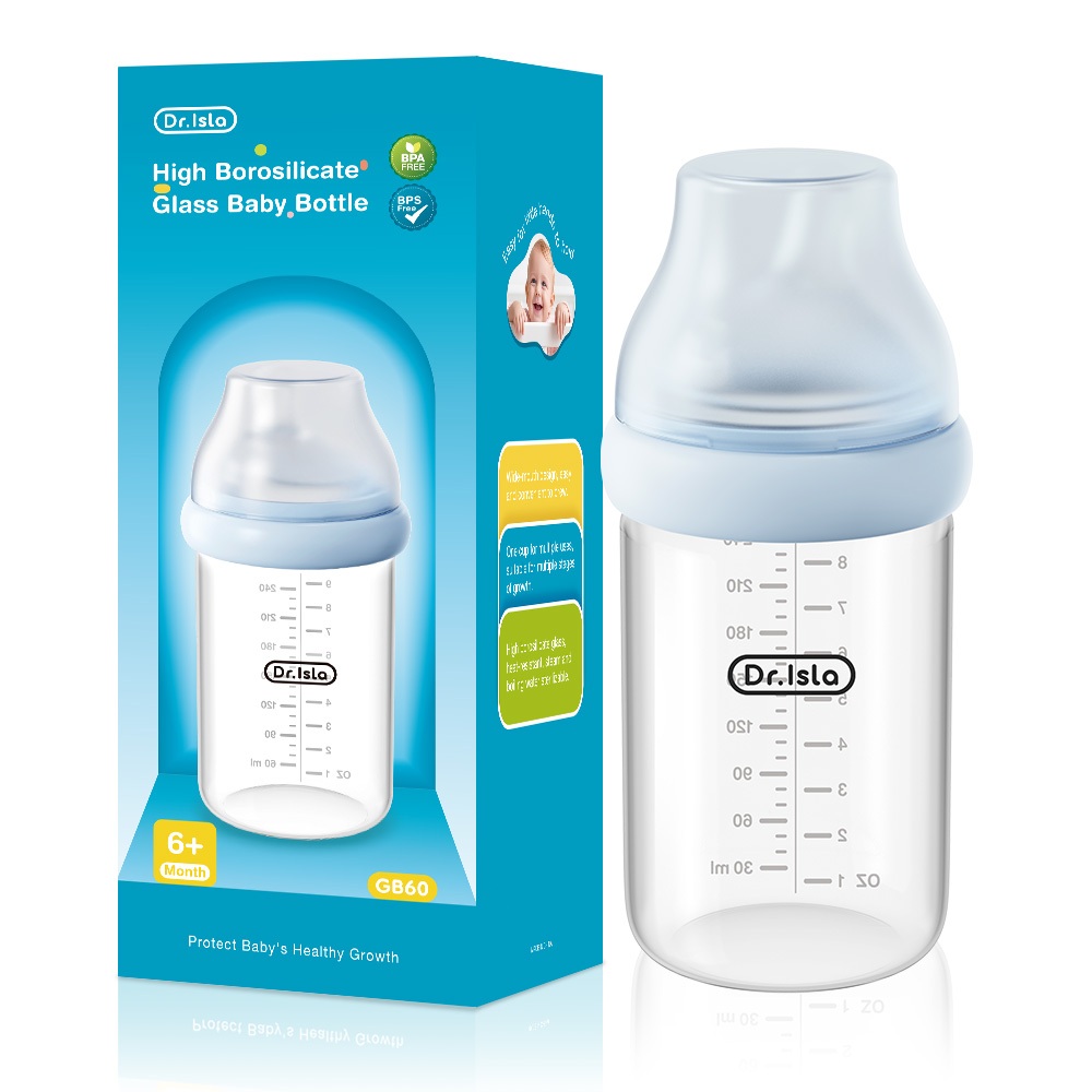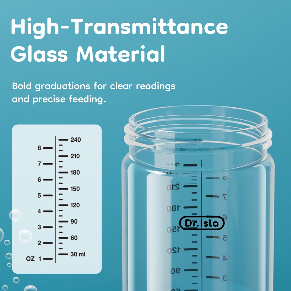 Dr.isla NEW Milk Bottle Glass 90ml/160ml/240ml Wide Neck Children's Anti-Colic BPA Free GB60