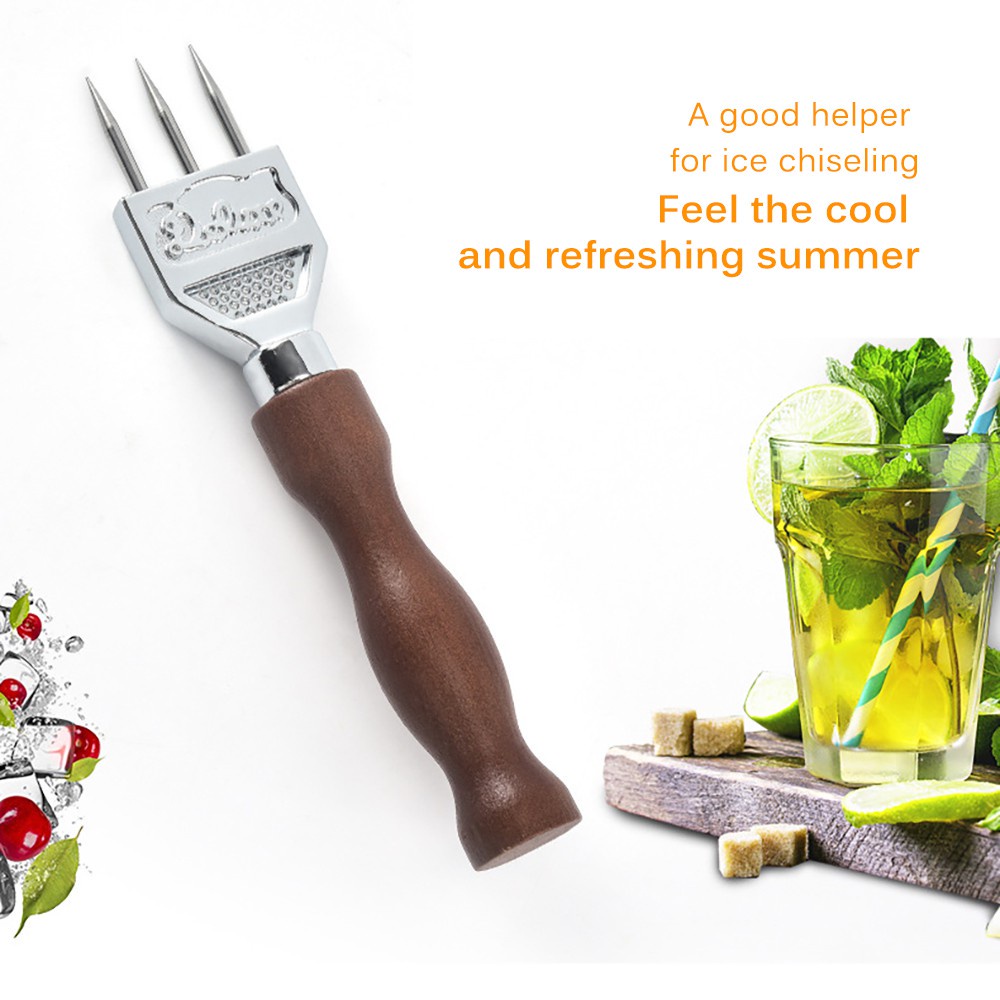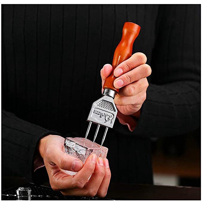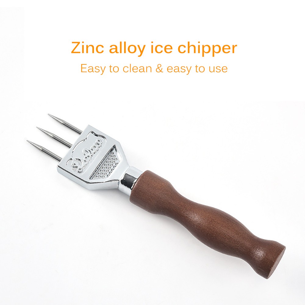 Manual Ice Pick Ice Crusher For Bar Bartender Zinc Alloy Ice Chipper With Solid Wood Handle