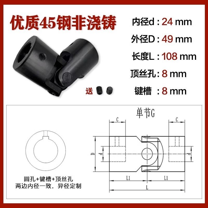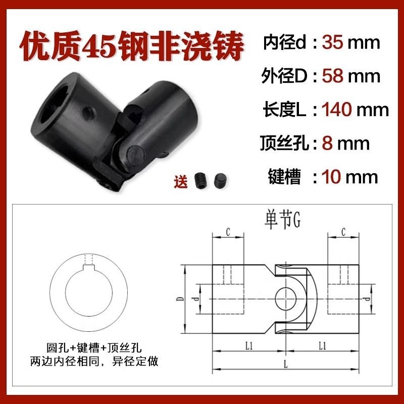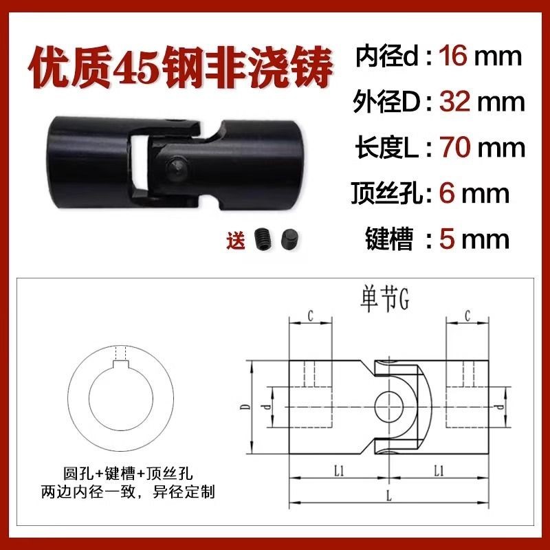 Manufacturer Precision Cross Universal Joint Coupling Single Section Universal Joint Drive Shaft Cross Shaft Non-Standard Customization 6-40