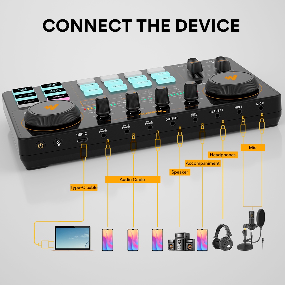 Maono AM200-S4 sound card set professional bluetooth sound card mixer condenser microphone for live broadcast, podcast, mobile phone, computer, YouTube, Tik-Tok