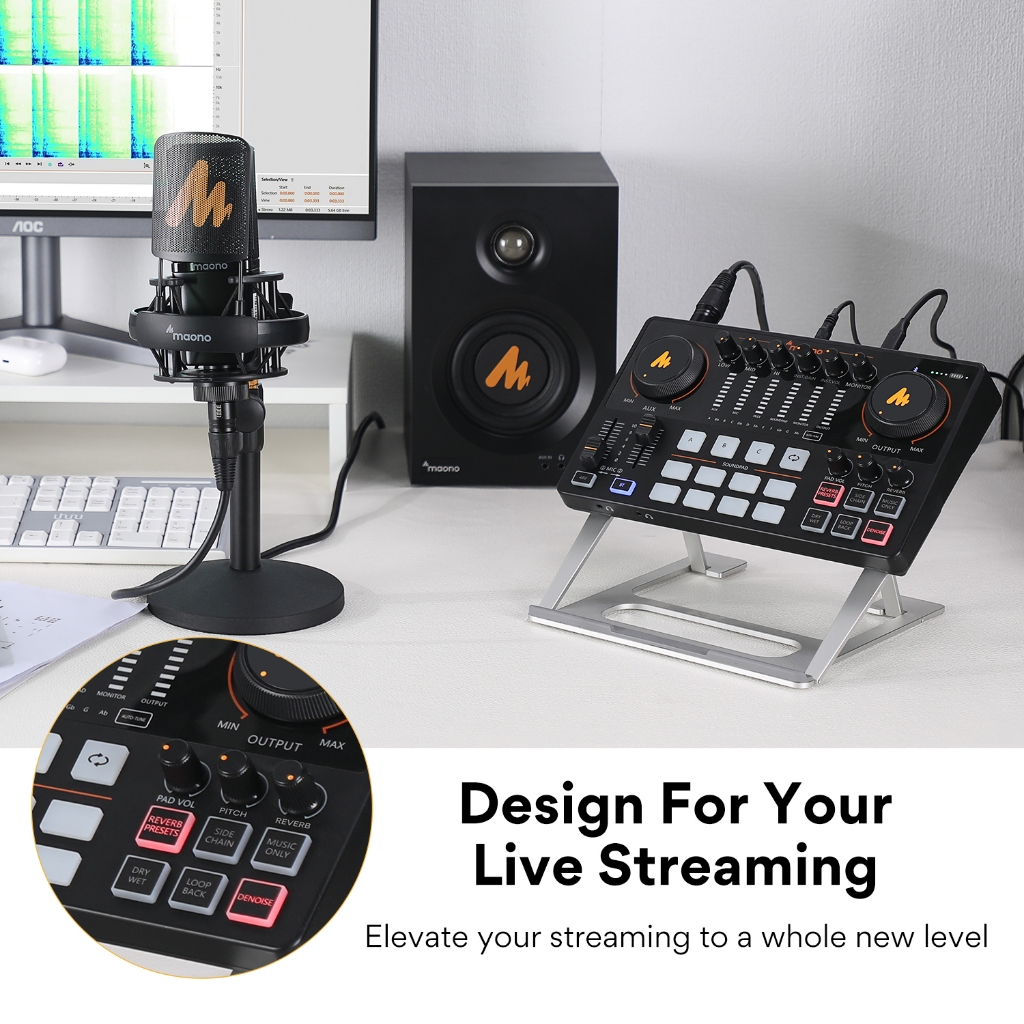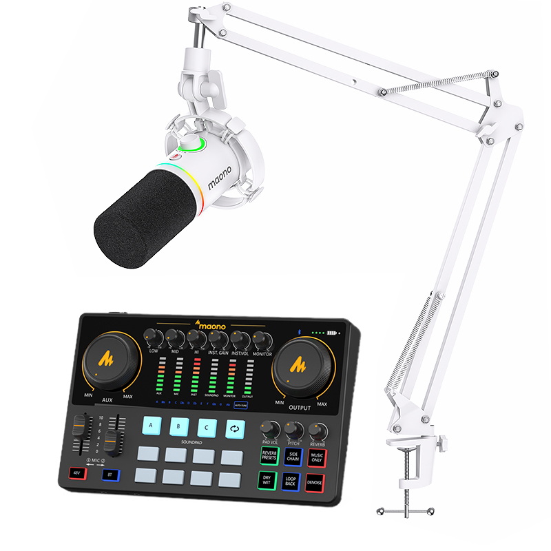 Maono AME2A Professional Sound Card Microphone Set Maonocaster Studio Mixer Audio Interface with Phantom power for Live, Recording, Podcast, YouTube