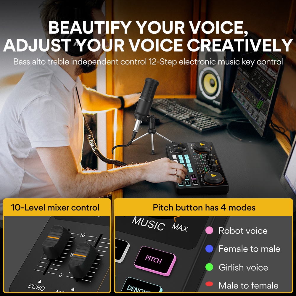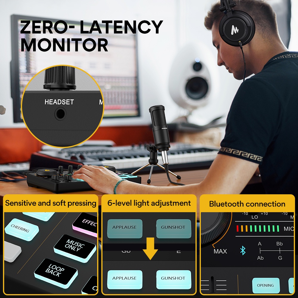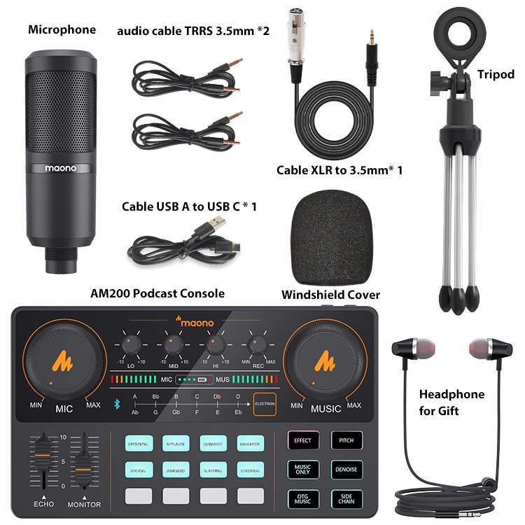 Maono AU-AM200-S1 Sound Card Condenser Microphone Set Professional Audio Interface Mixer With Bluetooth Accompaniment Input And Mic Set For PC,Phone,Guitar,Live Streaming,Recording