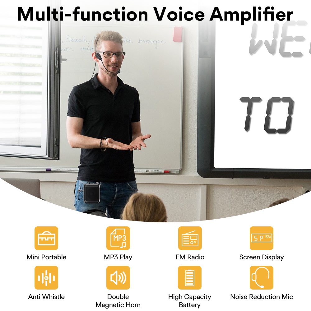 Maono C01 Mini Portable Voice Amplifier Megaphone Mini Mixer Amplifier Portable loud Speaker Professional Teacher Microphone with FM Repeat and Music Player Function for Coaches,Tour Guides
