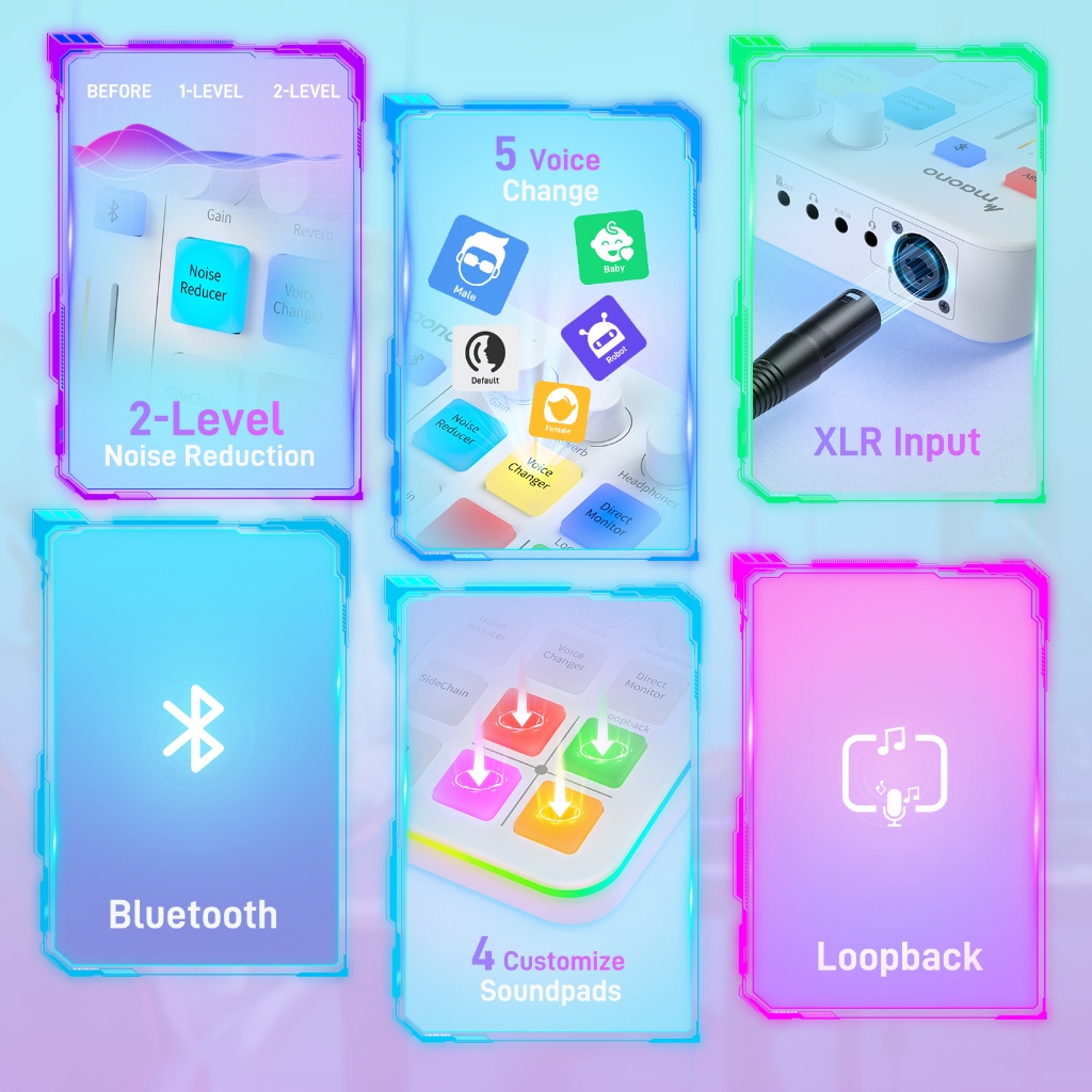Maono G1 Neo Gaming Audio Mixer Audio Interface with RGB Lights,Bluetooth and 48V Phantom Power Supply for Gaming,Live Streaming