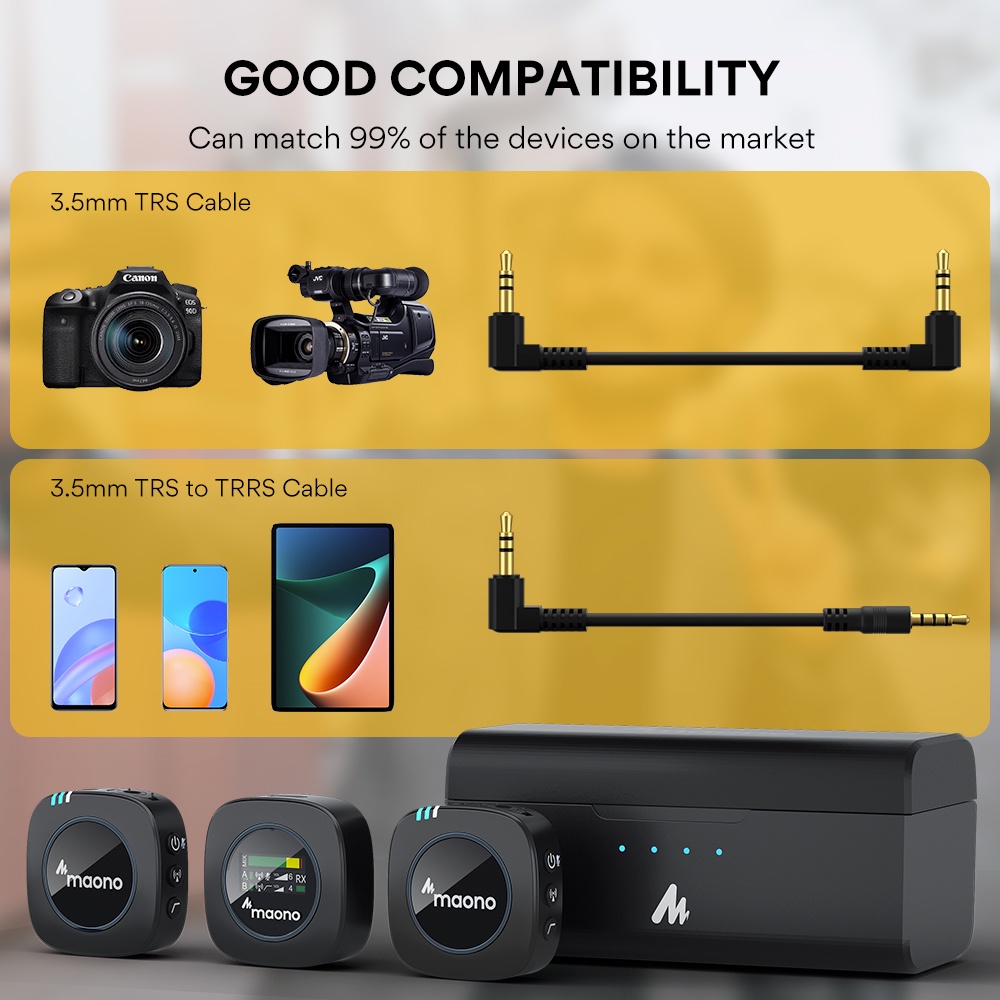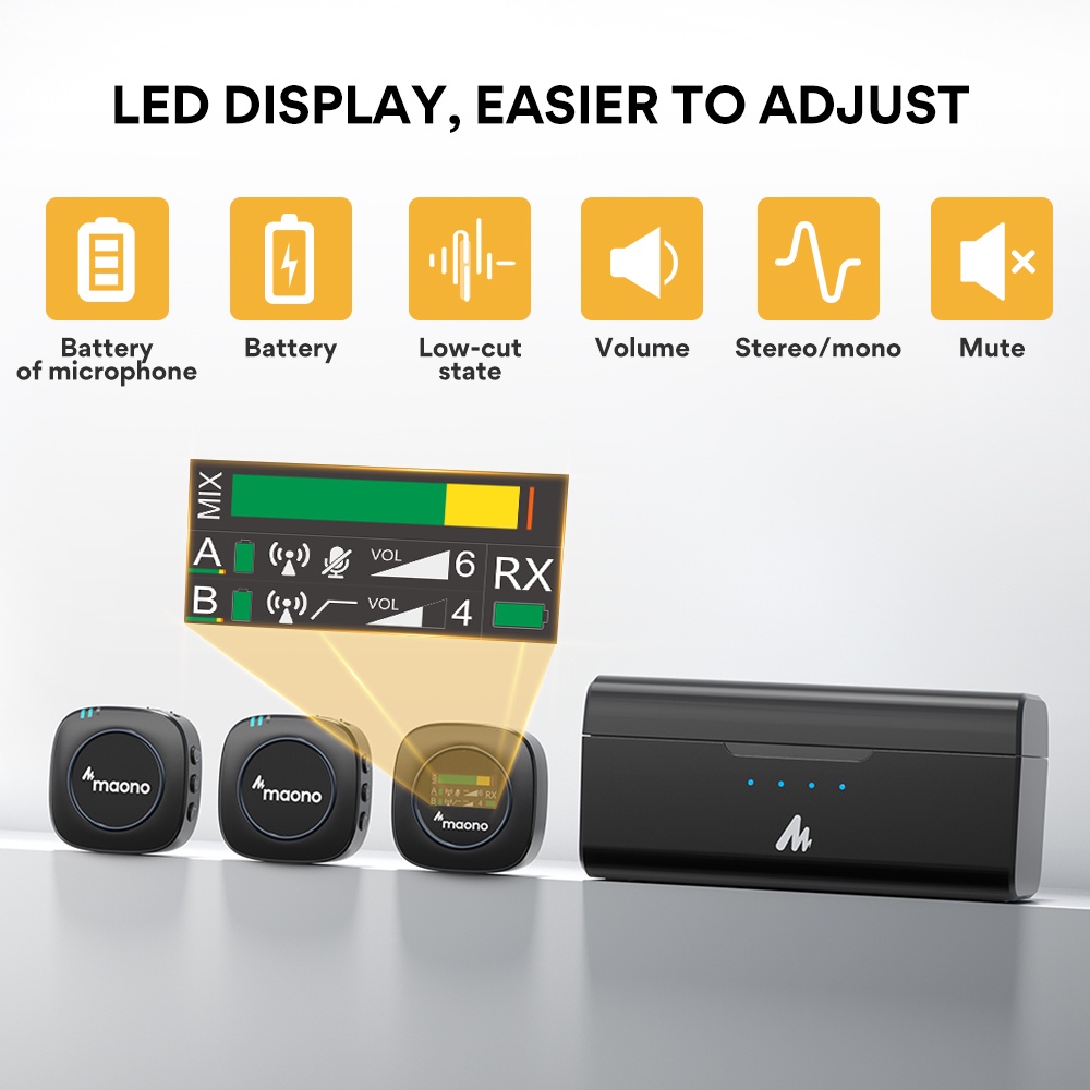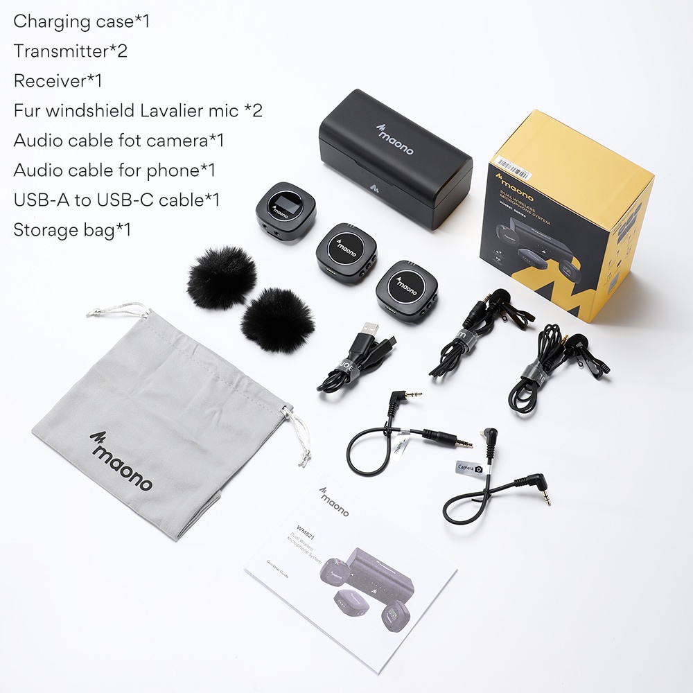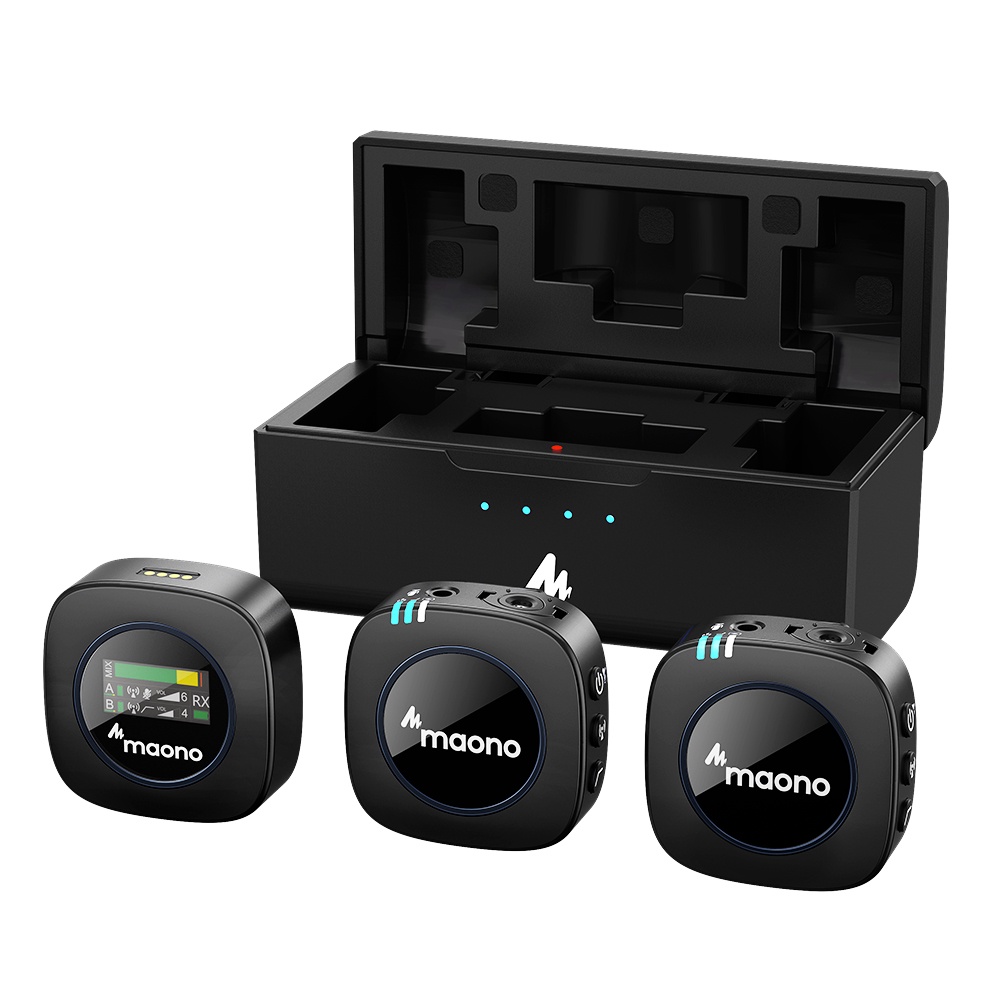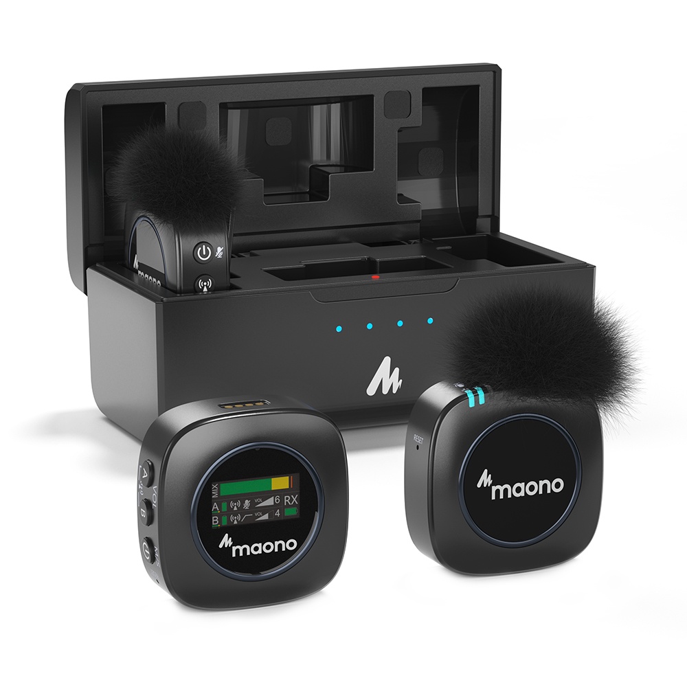Maono WM821 Wireless Microphone 2.4GHz Wireless Lavalier Microphone System Wireless Mini Microphone with Charging Case for Vlogging,Interview,Live Streaming,Phone,Camera,DSLR