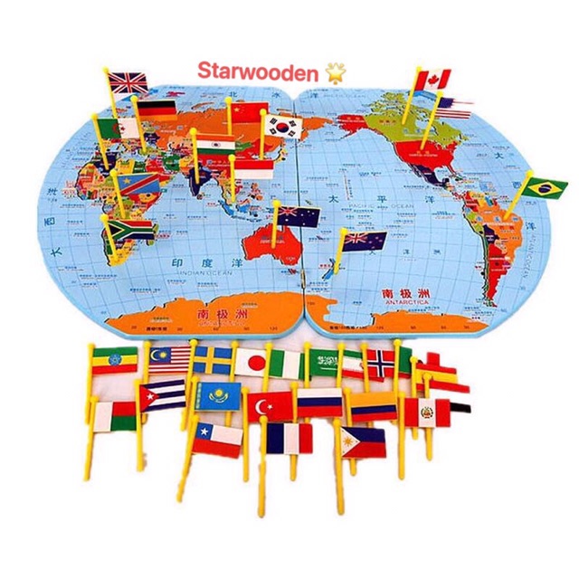 Map of the world national flag board World Map Puzzle with Flags, Capitals, Stickers Geography Toys