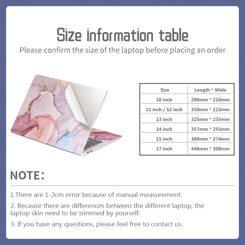 Marble laptop skin vinyl two sides laptop skin for 11/12/13/14/15/17 inch Universal laptop dedicated sticker cover