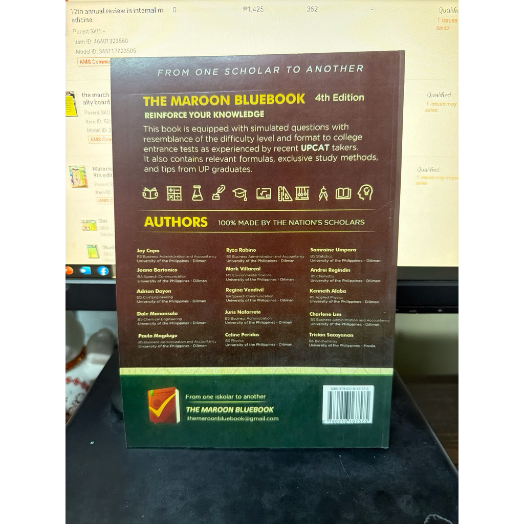 Maroon bluebook Upcat-focused college entrance exam reviewer 2024
