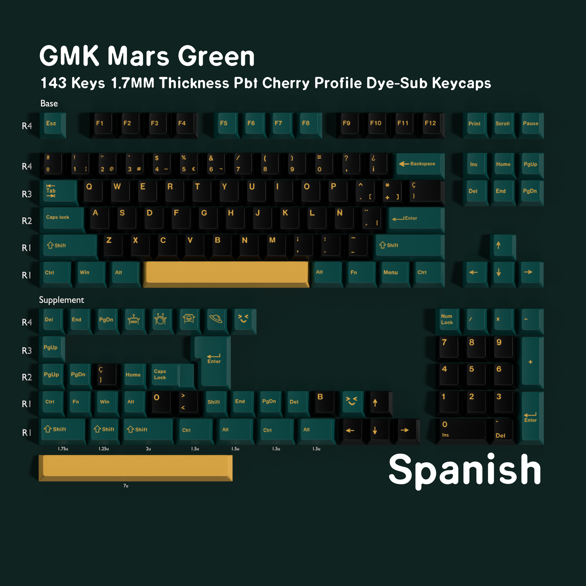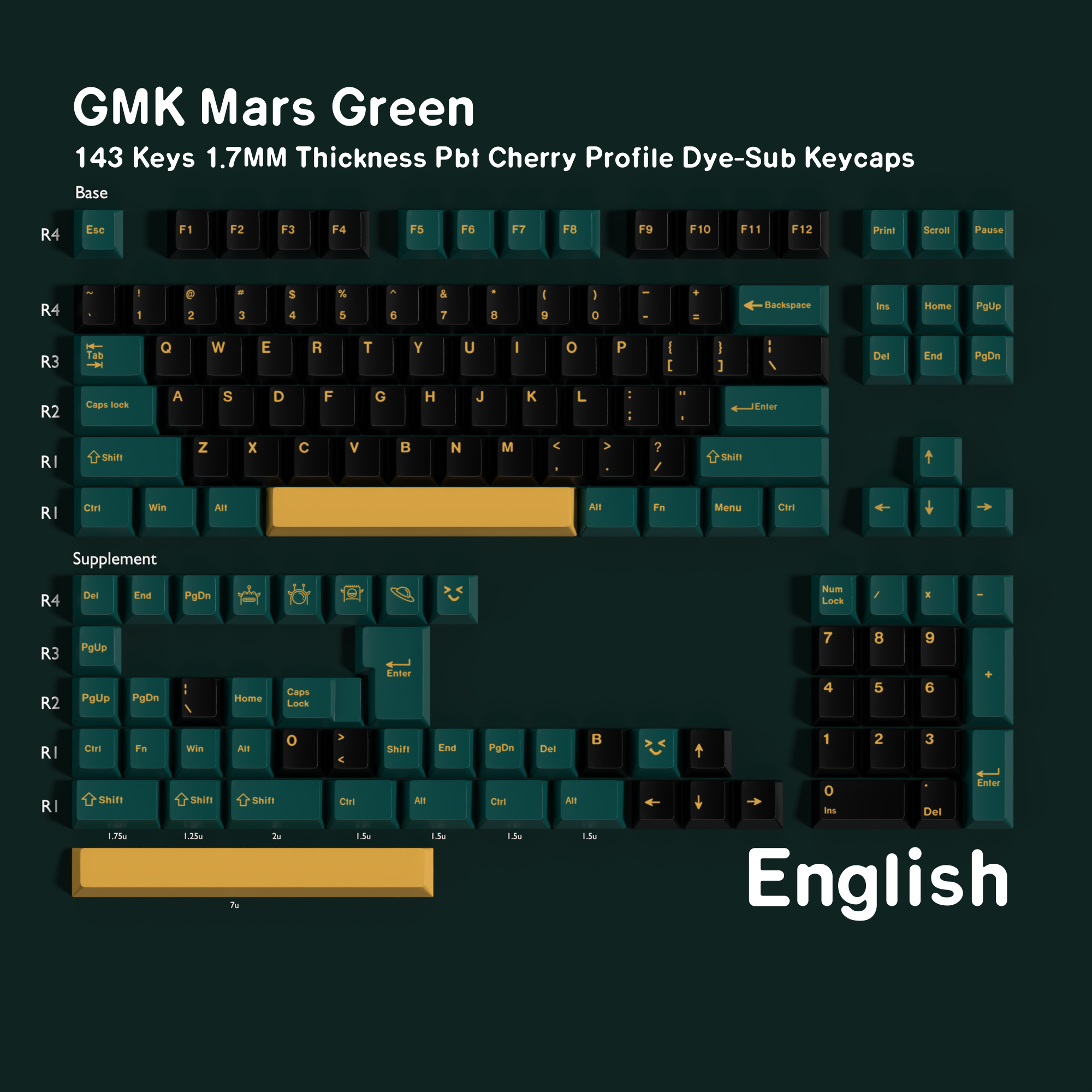 Mars Green Keycaps PBT Cherry Profile Dye-Sub Zhuyin Spanish Japanese Cangjie 143 Keys for MX Switches Mechanical Keyboard