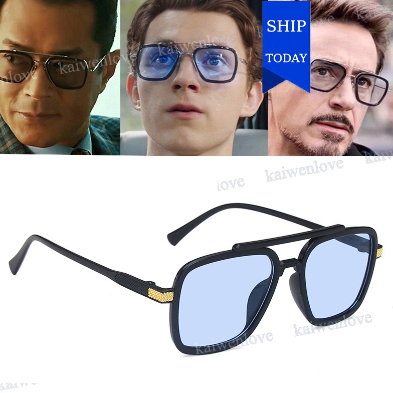 Marvel Iron Man Downey Spider-Man Same Style Men's Double Beam Big Frame Square Sunglasses Sunglasses Anti-blue Light Mirror A1A