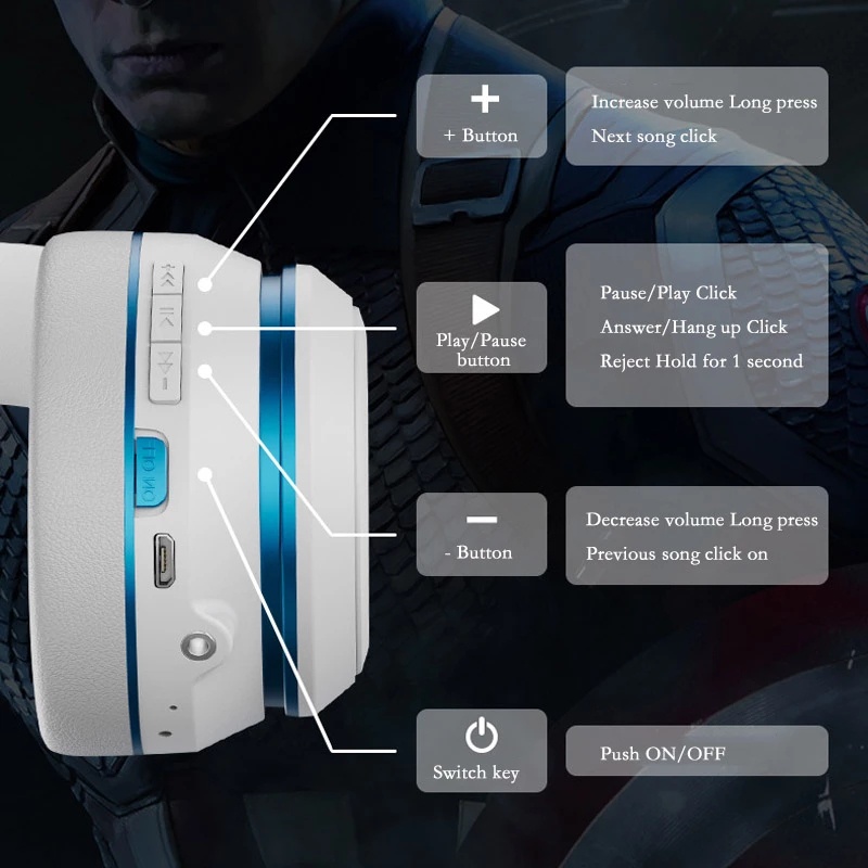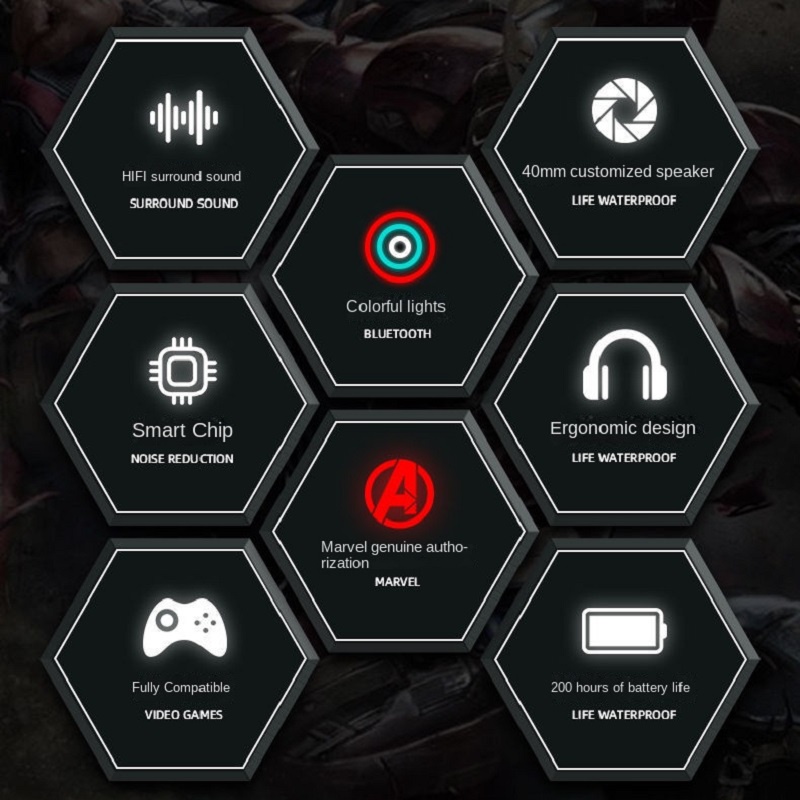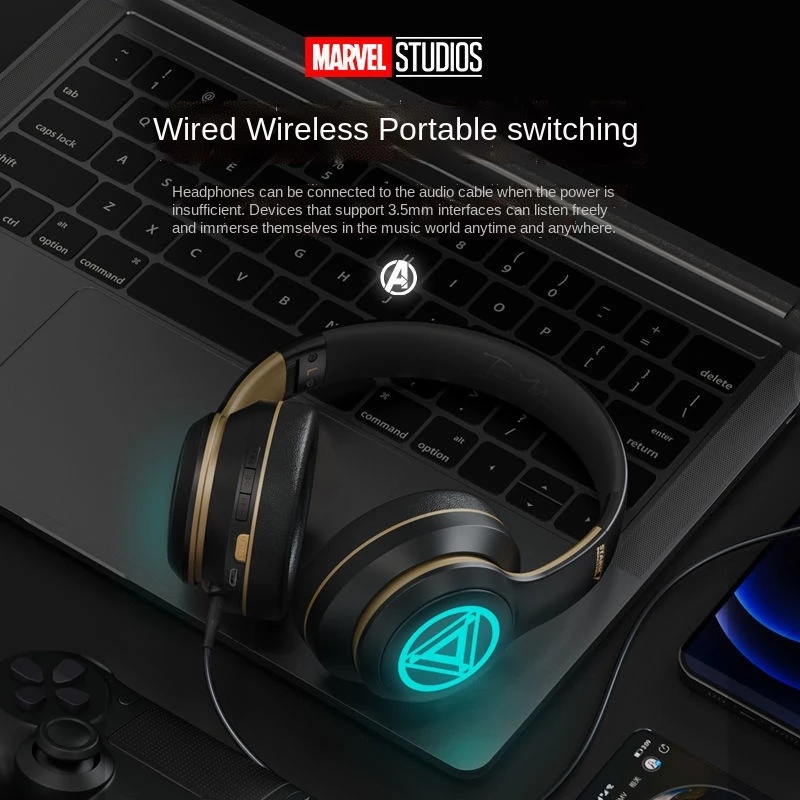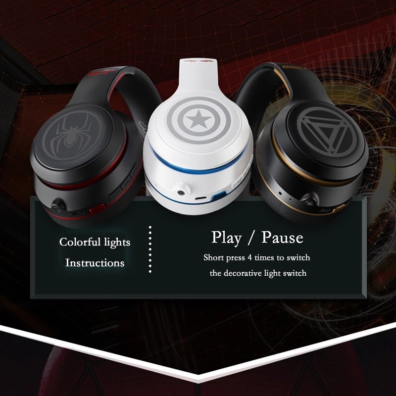 Marvel Original RGB Wireless Bluetooth Noise Cancelling Gaming Headphones HiFi Headset Avengers Spiderman Iron Man Captain America Headphone with Microphone Mic