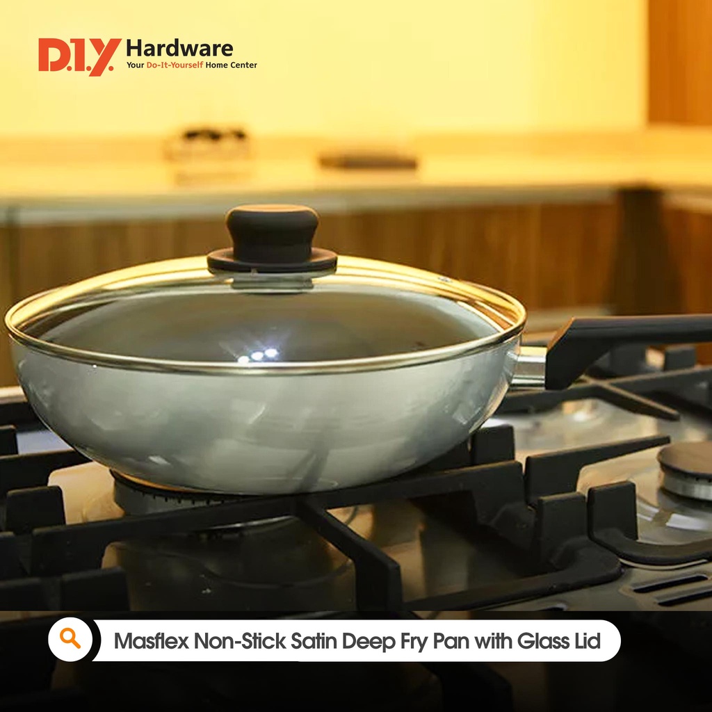 Masflex Non Stick Satin Induction Deep Frying Fry Pan w/ Glass Lid 28cm Frying Pan BB-28DP