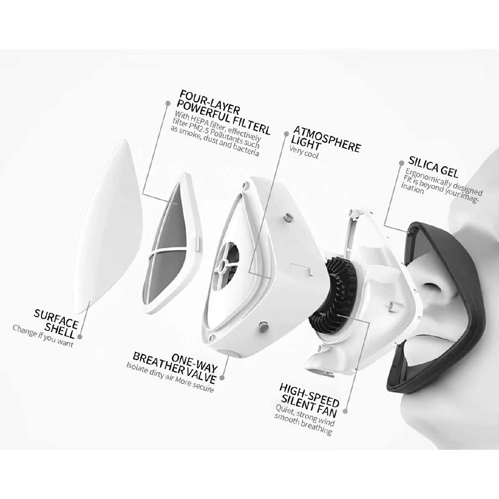 Mask Air Purifier 4-Ply Rechargeable Electric Air Purifier Wearable Air Purifiler Respirator with Replaceable Activated Carbon Protect Layer