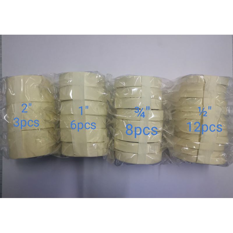 Masking Tape Paper Tape Size 2" 3pcs, 1" 6pcs, 3/4" 8pcs , 1/2" 12pcs, (Sold per Pack) 10 Meter