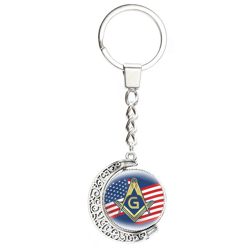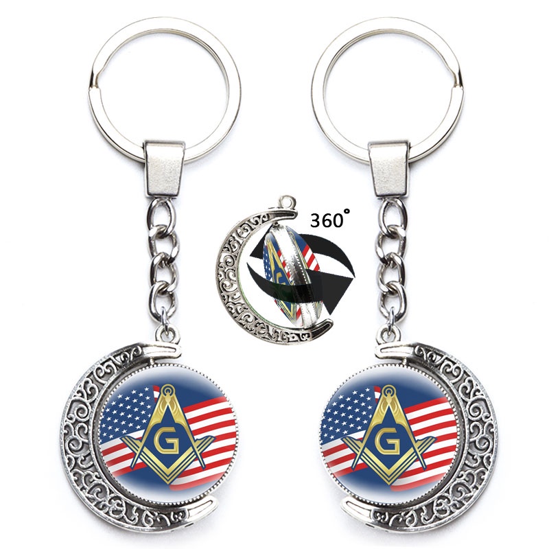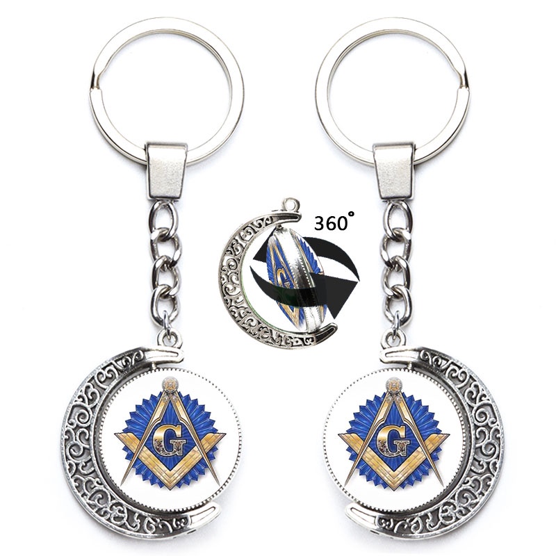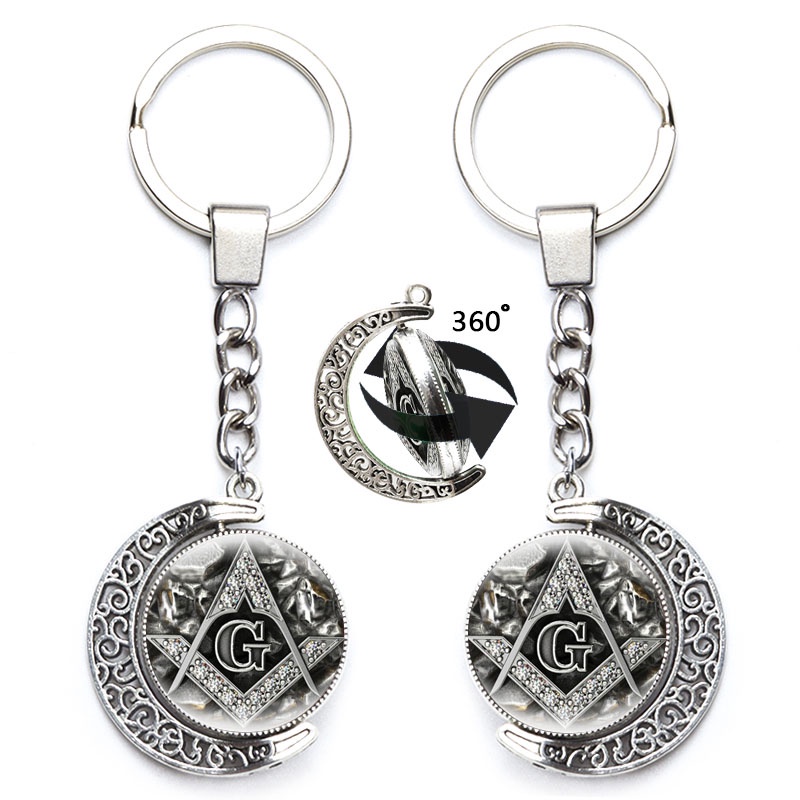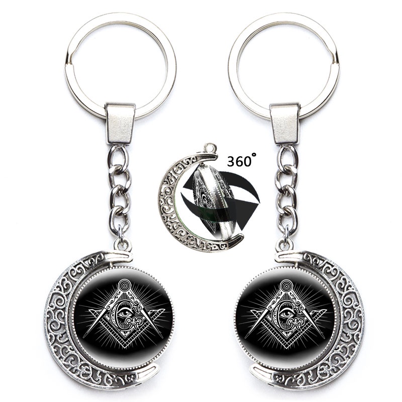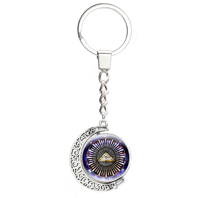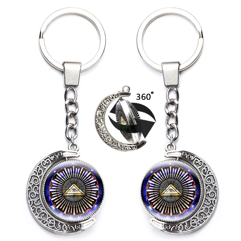 Masonic Illuminati Pyramid Eye Keychain Freemason G Templar Art Symbol 360 Degrees Rotated Moon Metal Pendant Keyring Jewelry