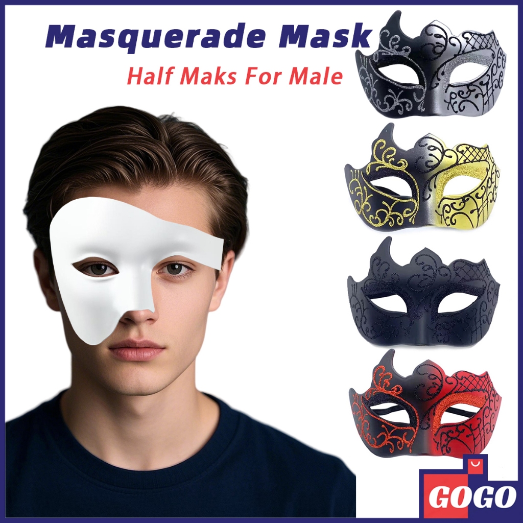 Masquerade Mask For Male Men's Painted Gold Powder Mask Masquerade Mask Half Face Men's Mask