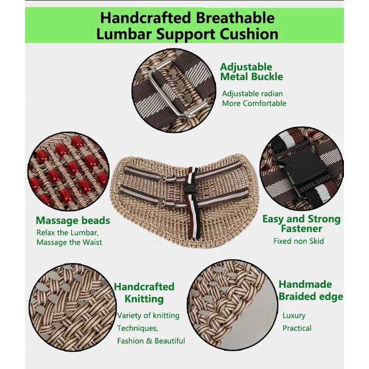 Massage Chair Seat Travel Waist Back Brace Support Lumbar Pillow Cushion for Car Ventilated Shock