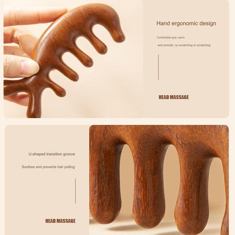 Massage Comb Resin Scalp Body Meridian Blood Circulation Anti-static Sandalwood Wide-Tooth Head Massage Comb Multifunctional Head Massager Facial Nose Scraper Hair Therapy