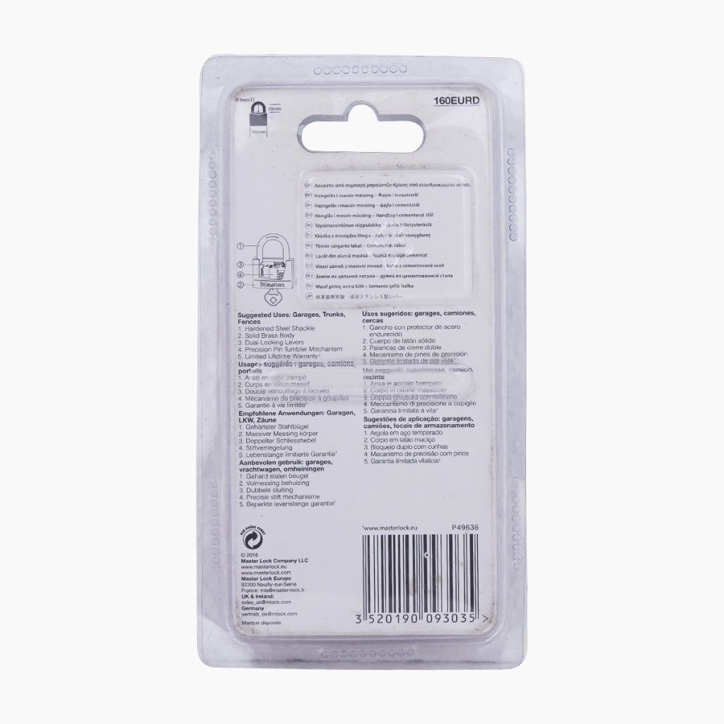 Master Lock 160EURD Brass Padlock 60MM