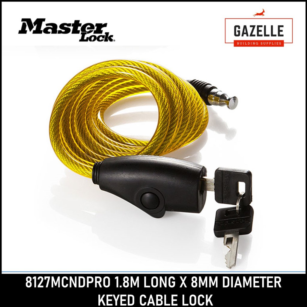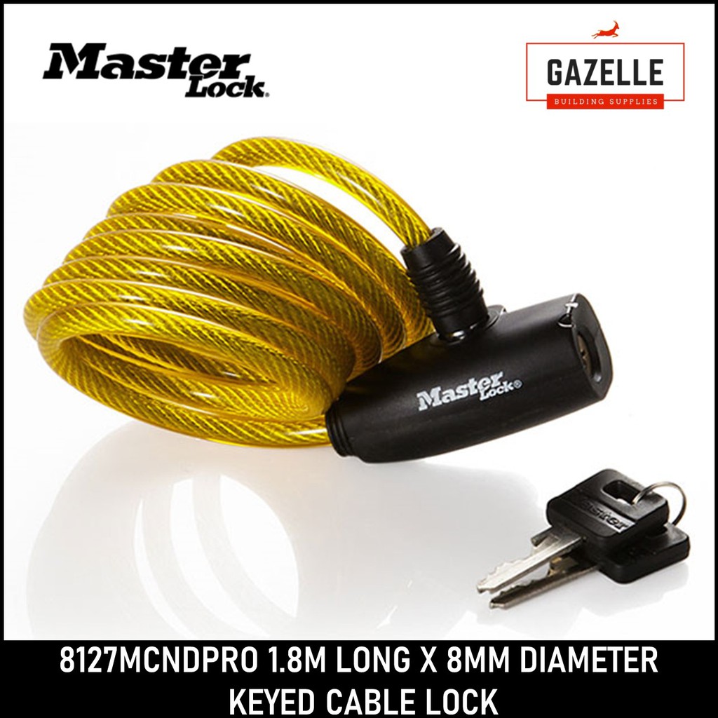 Master Lock 8127DPRO (1.8m Long x 8mm Diameter) Keyed Cable Padlock Bike Cable Lock Masterlock