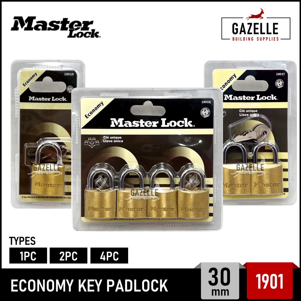 Master Lock Brass Keyed Padlock Masterlock 1 3/16" (30mm) - 1901D / 1901T / 1901Q