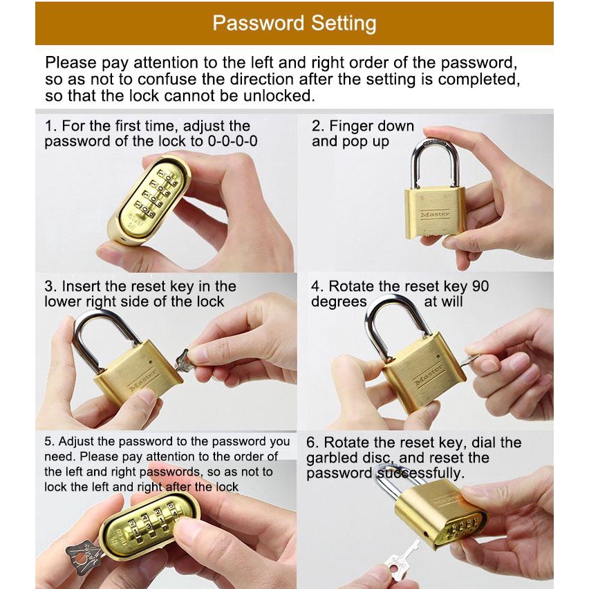 Master Lock Brass Password Lock Bottom Opening Brass Padlock Box Lock Cabinet Lock Small Lock Head Opening Lock Power Meter Box Lock Small Copper Lock