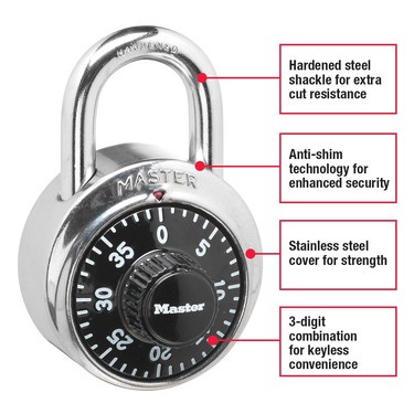 Master Lock Dial Combination Padlock 48mm Black Model: 1500D