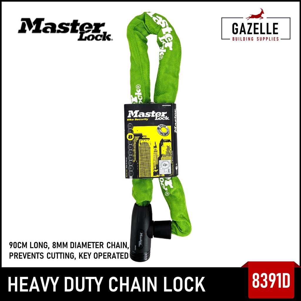 Master Lock Heavy Duty Bike / Cycle Chain Lock Nylon Covered 90cm Long 8mm Thick Chain w/ 2 Keys