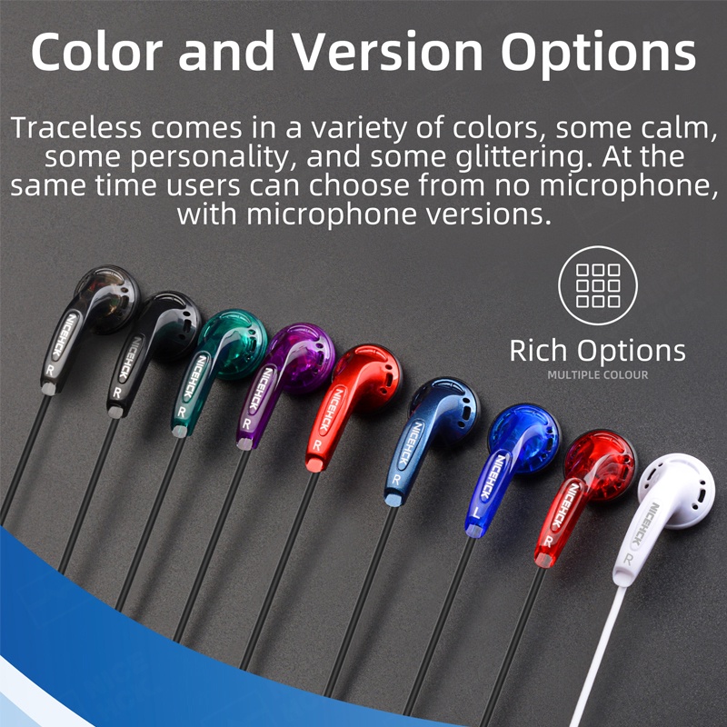 NiceHCK Traceless 3.5mm Type Earphone HIFI Earbud 15.4mm Dynamic Driver Unit DJ Bass Wired HD Mic