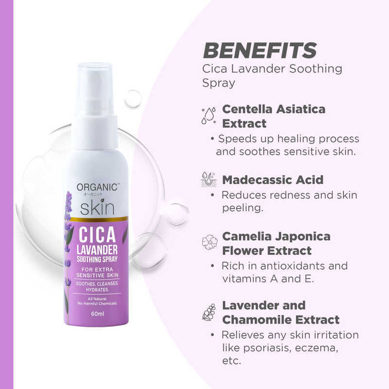 Organic Skin Japan Cica Lavander Soothing 60Ml Face Mist Spray Bottle With Lavender Scent 2Df