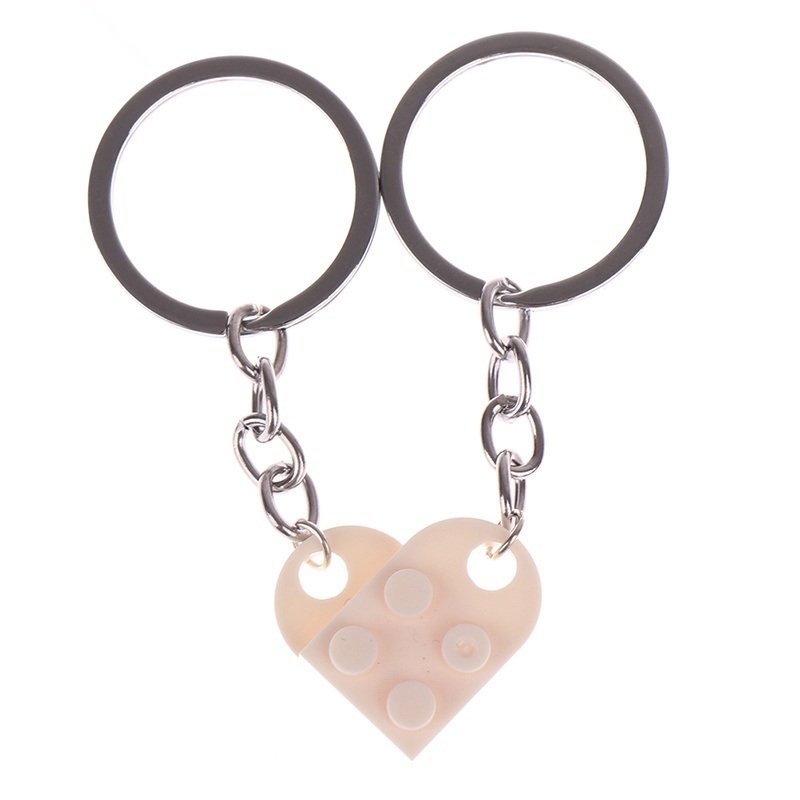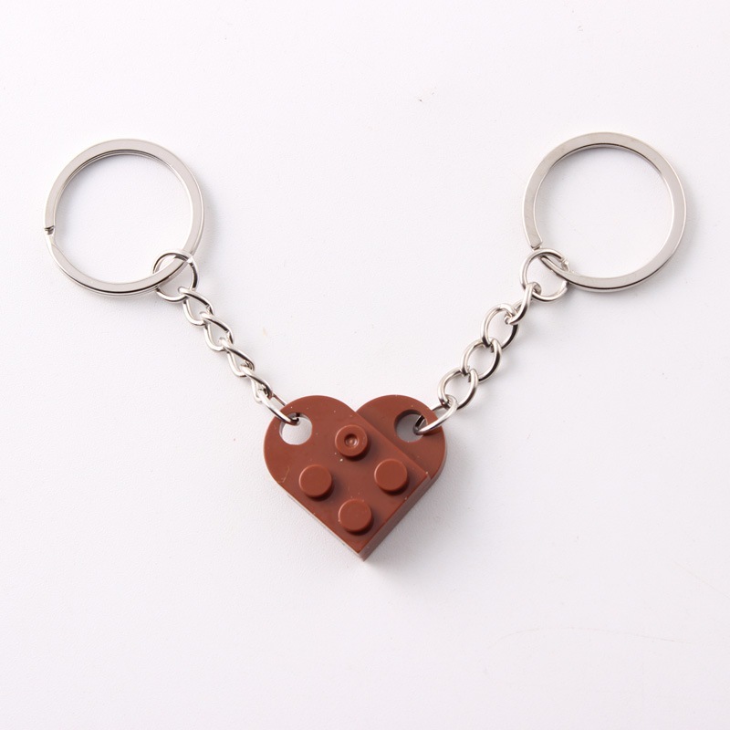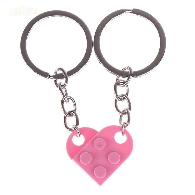 Matching Paired Brick Block Love Heart Keychain Keyring for Couple Lover Best Friends Perfect Gift
