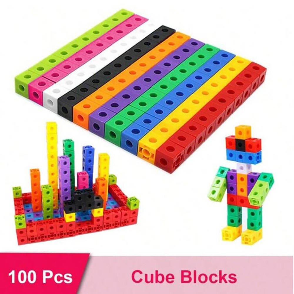 Math Linking Cubes, Set of 100 Math Cubes Manipulative Connecting and Counting Snap Blocks for Early Math and Construction, Math Manipulatives Games,Educational Toy for Kids