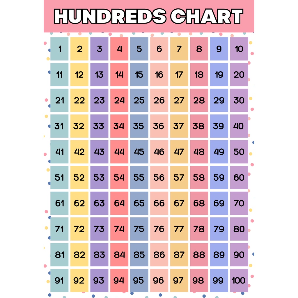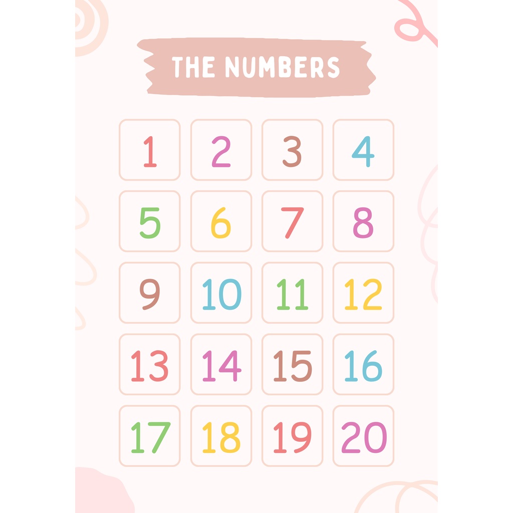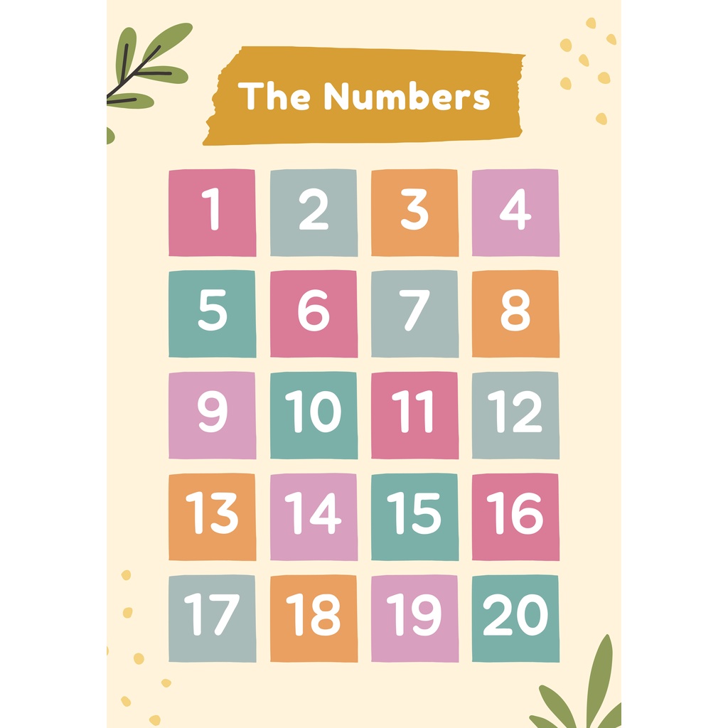 Math Number Counting Chart Laminated A4 Size 1 to 20 and 1 to 100