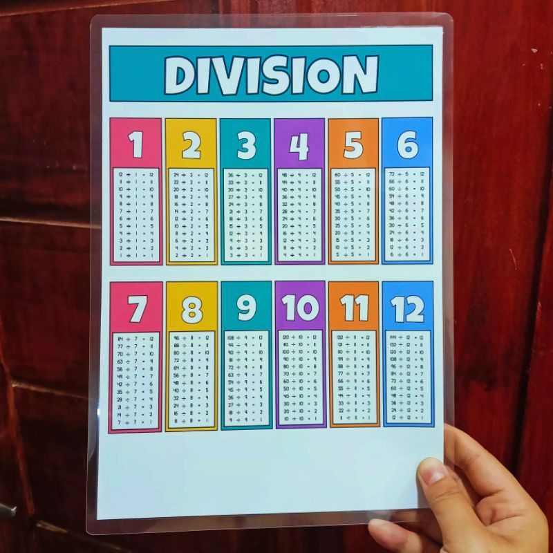 Math Tables Addition Subtraction Multiplication Division Educational Laminated Charts A4 -1PC.