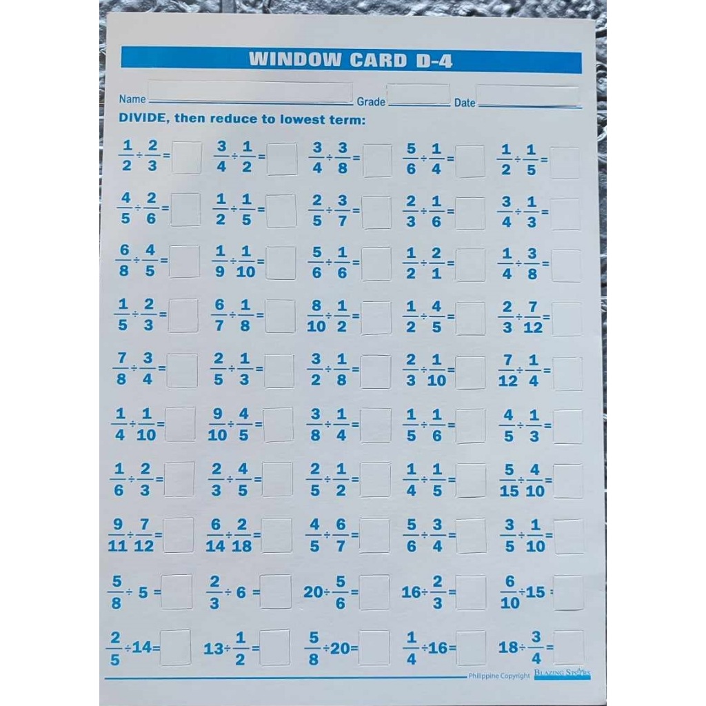 Math Window Card ( A4 . S4 , D4 . M1 , M4 , ) per piece