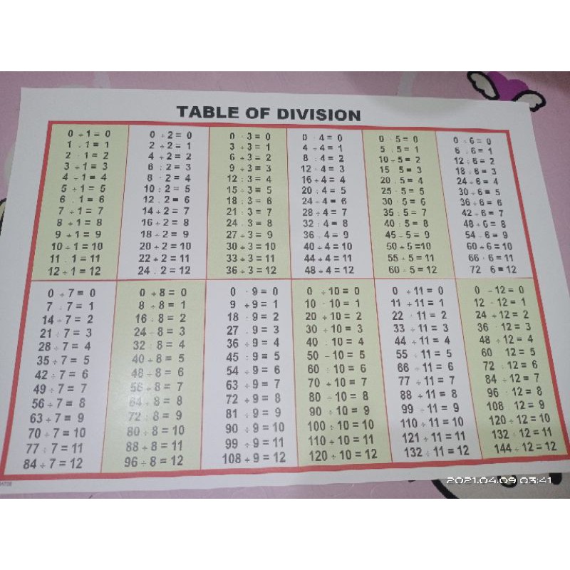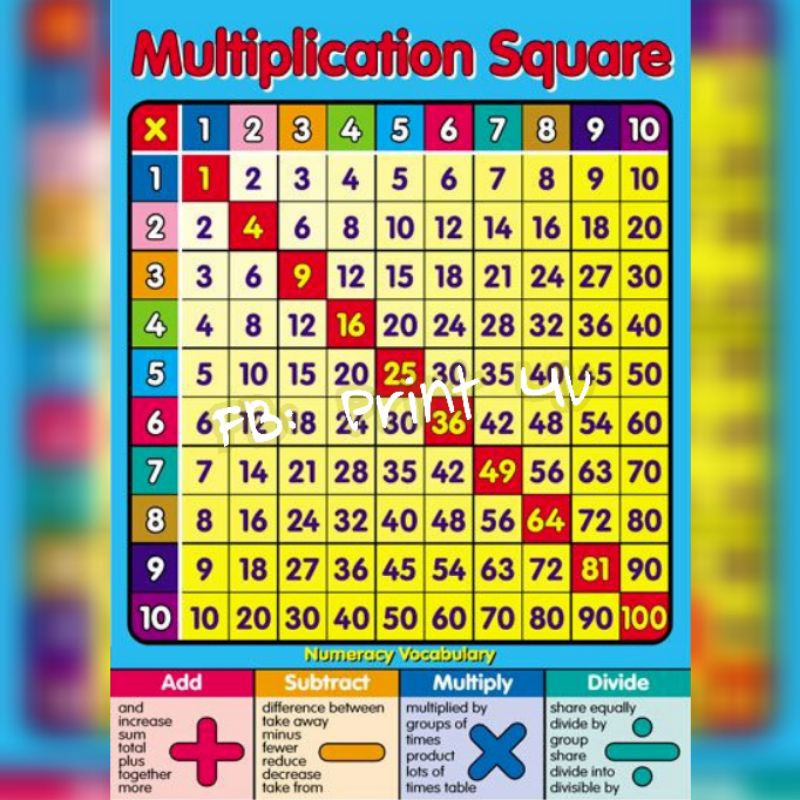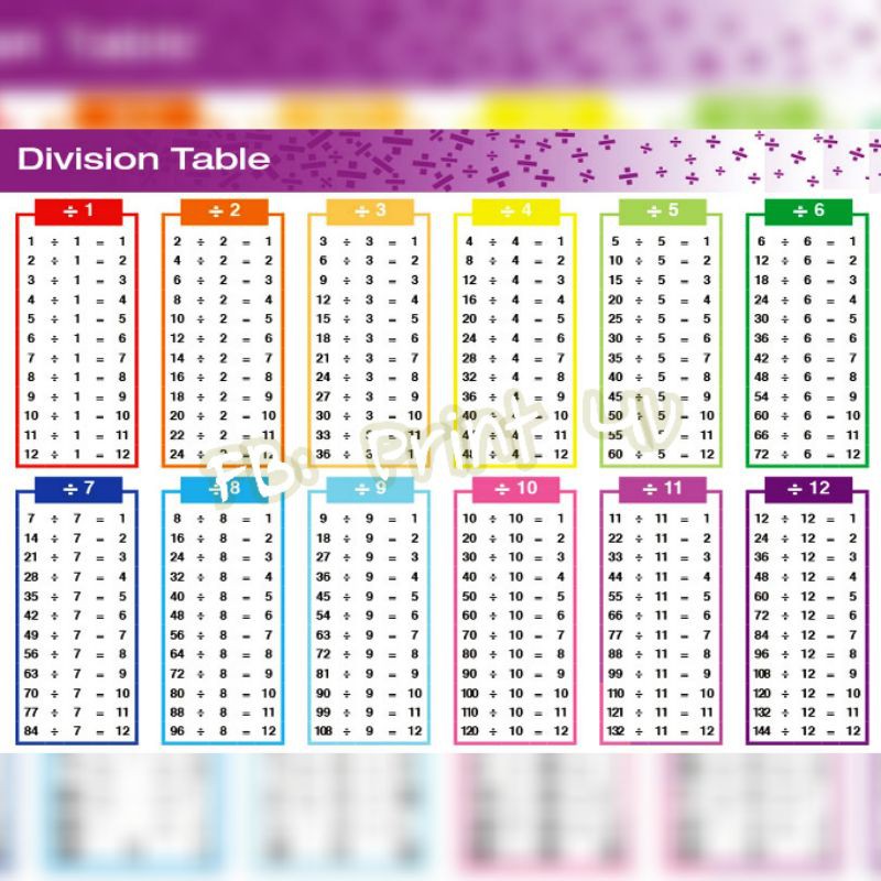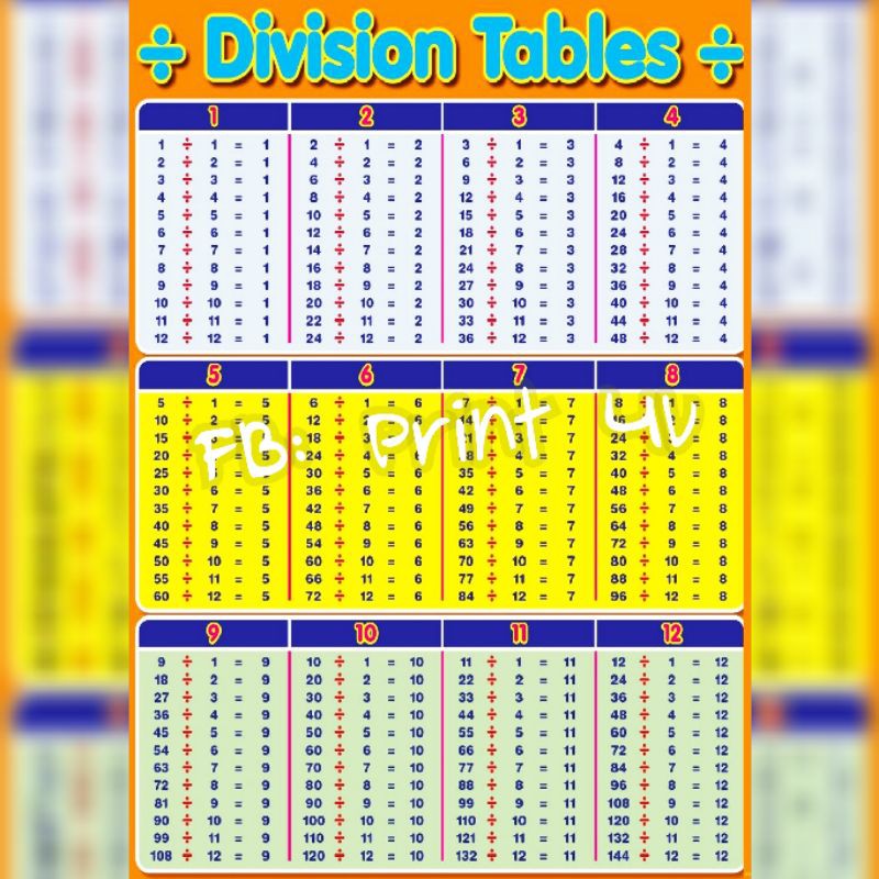 Multiplication and Division Table Chart Educational Math Learning Material Preschool,Grade School