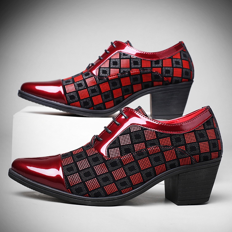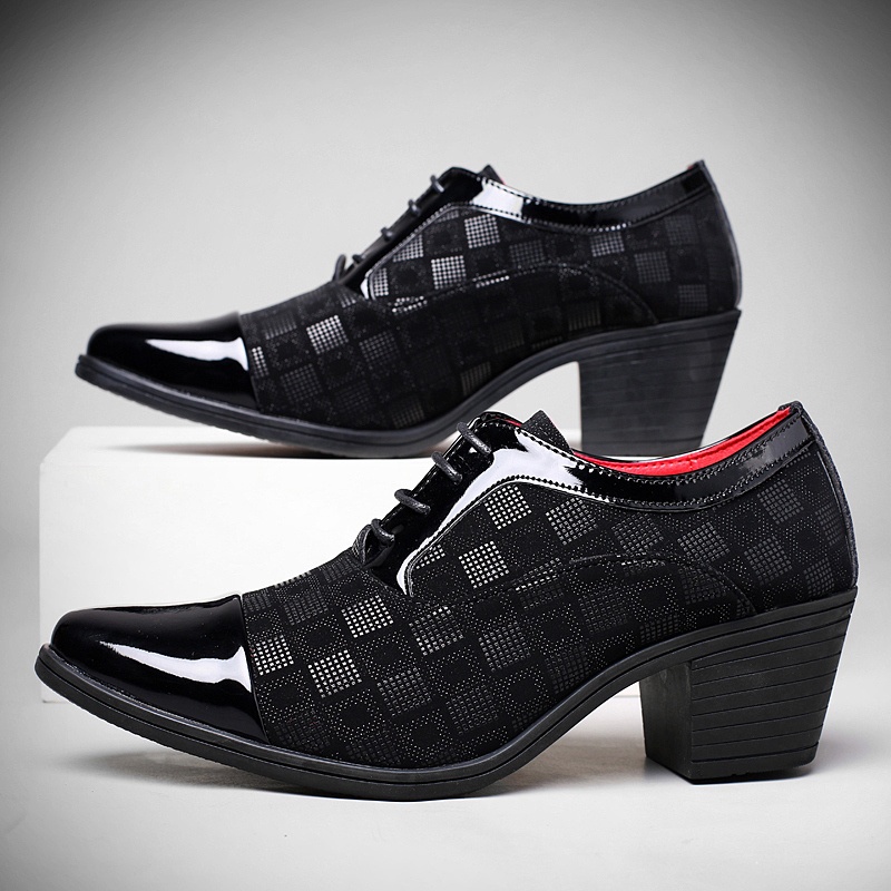 Matrix Wedge Heel Leather Shoes Men's Pointed High-Heeled Shoes/Padded High Shoes/Heightened Shoes/Suit cos/cosplay