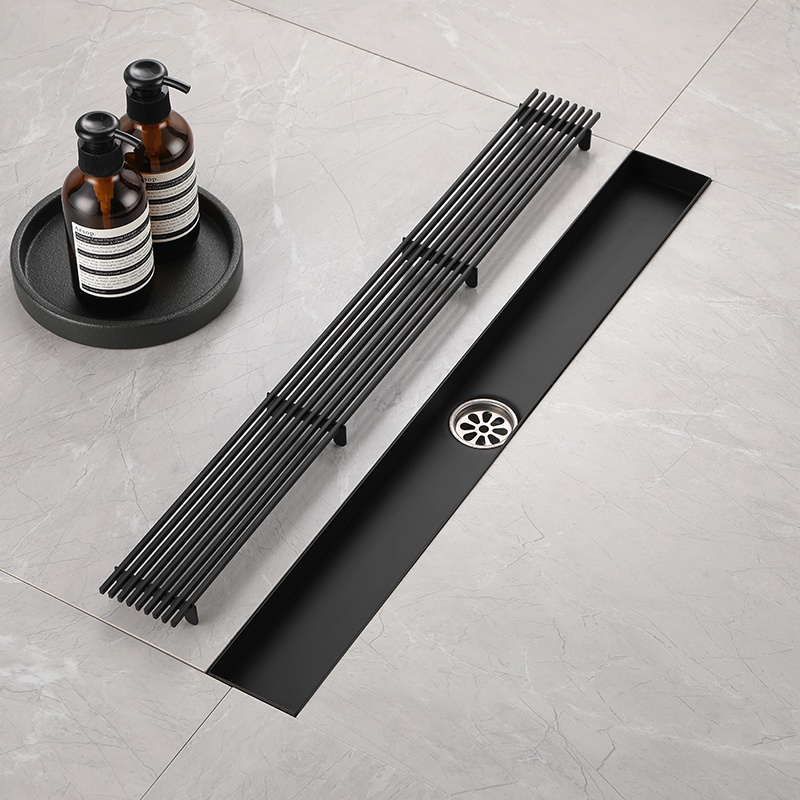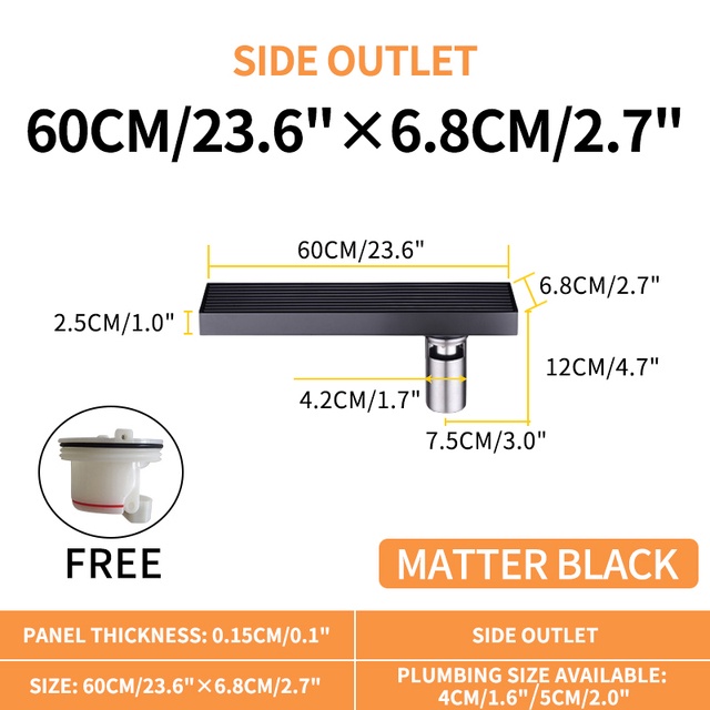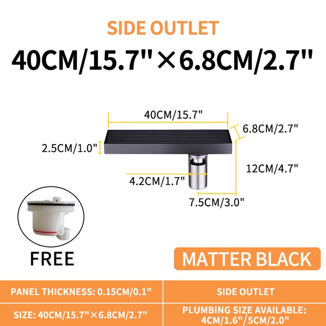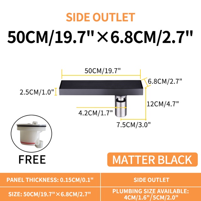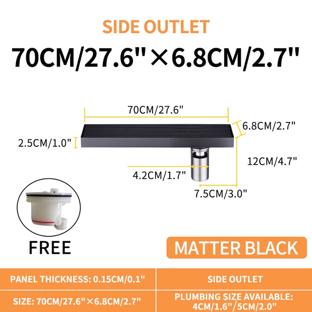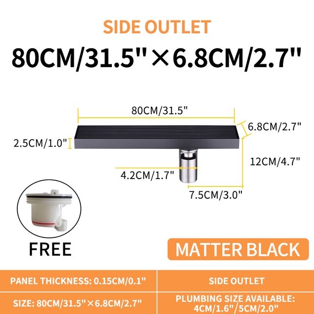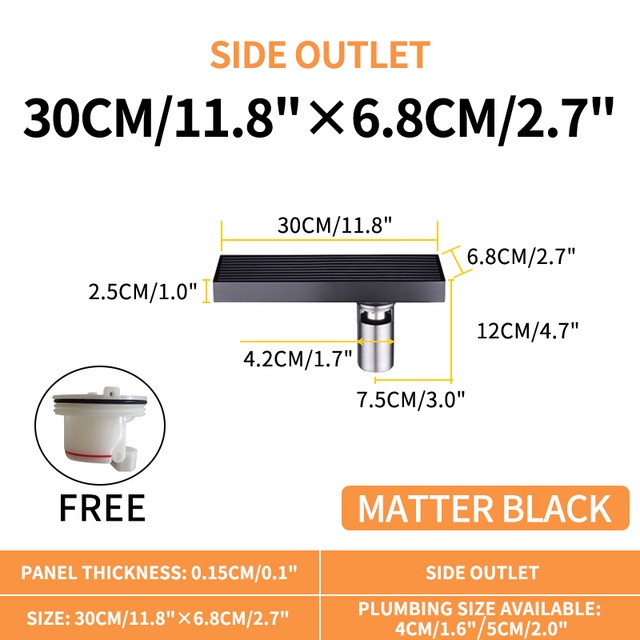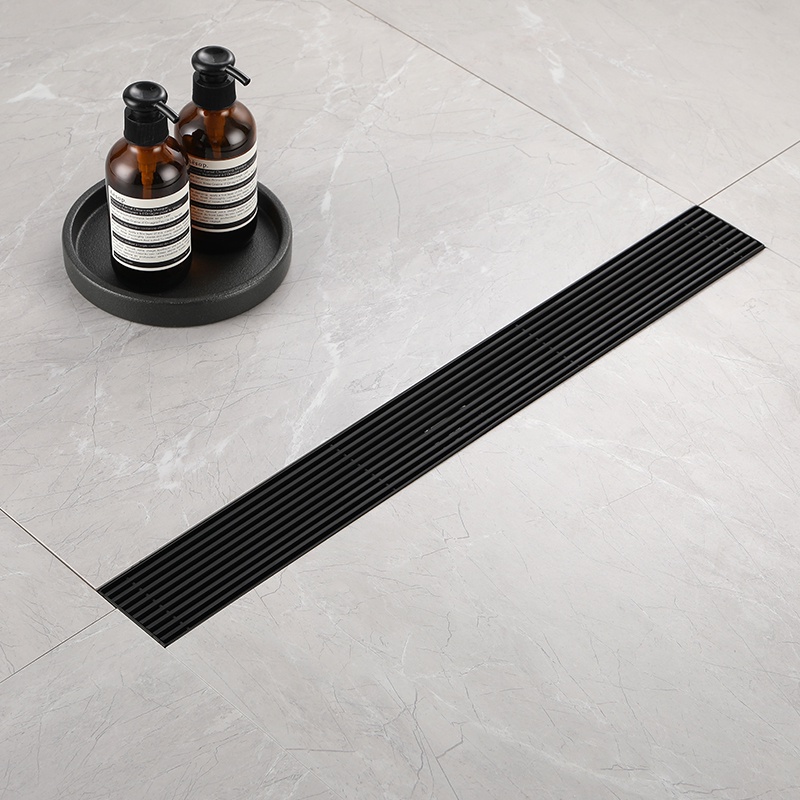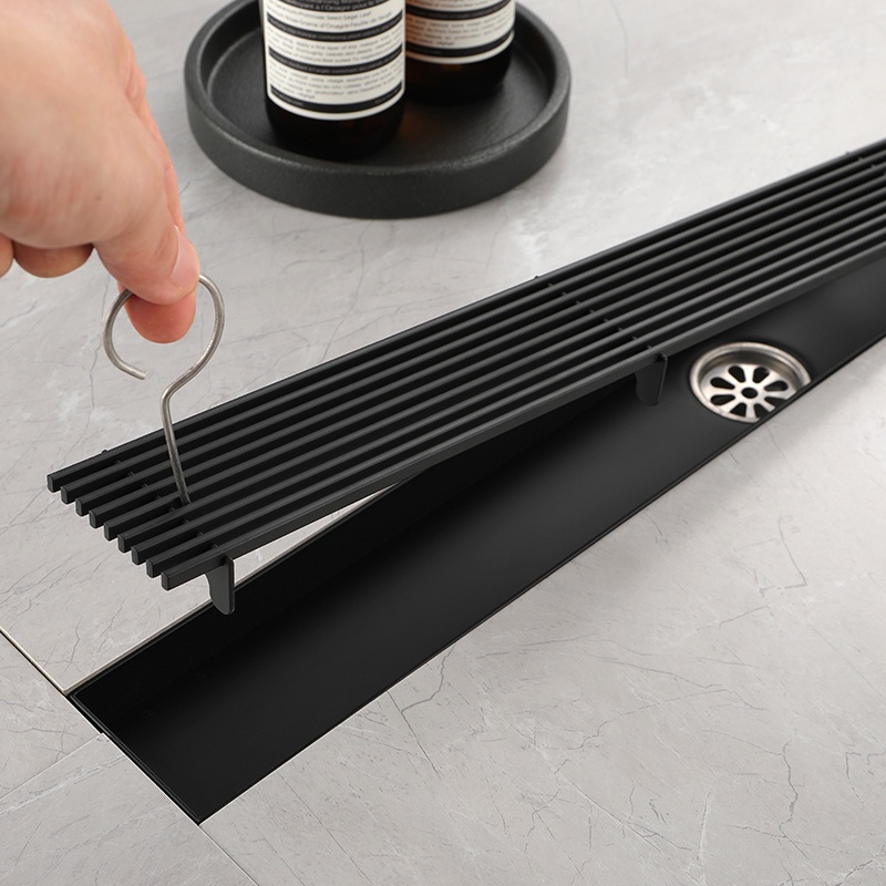 Matte Black Linear Shower Drain with Removable Grate Cover 304 Stainless Steel Shower Floor Drain Shower Drain with Hair Catcher 300mm - 900mm Bath Drain Odor Stop System