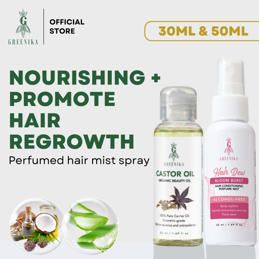 [ HAIR MIST PERFUME SPRAY + CASTOR OIL ] Greenika Hair Dew Perfume Mist + Castor OIl Bundle