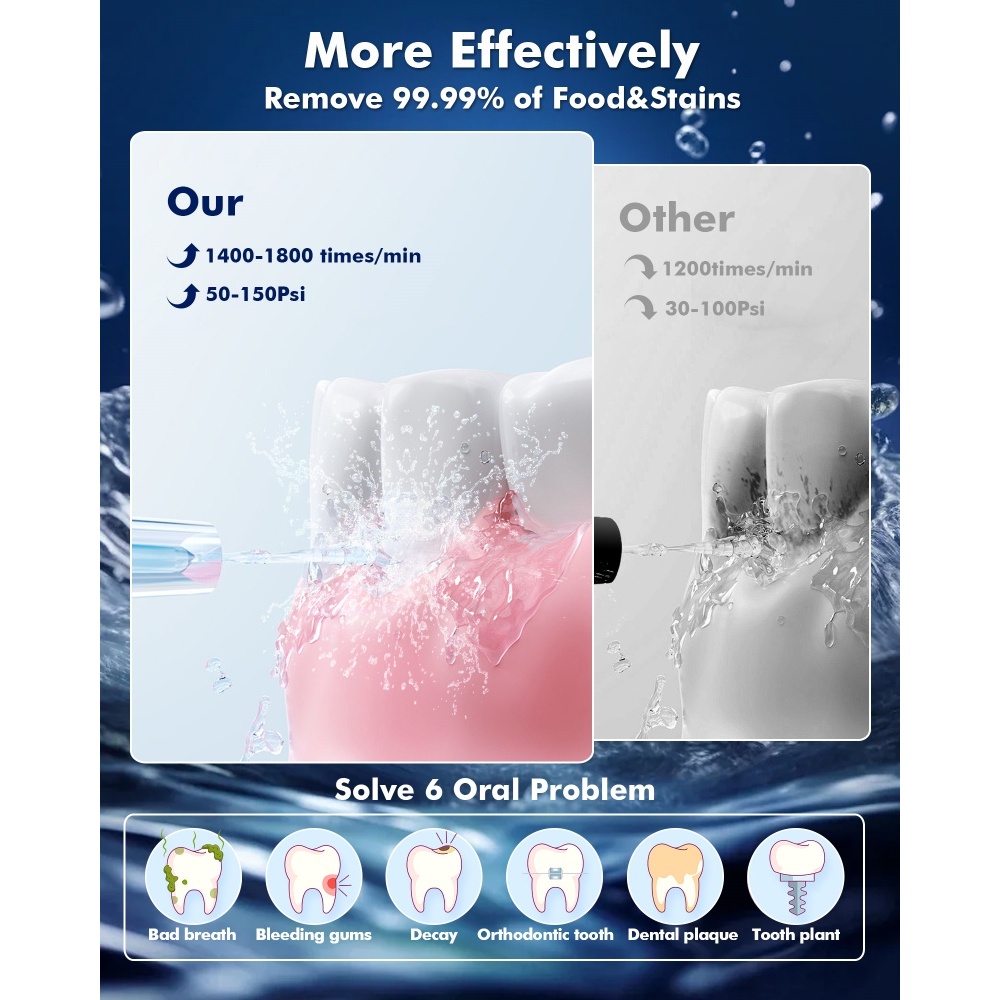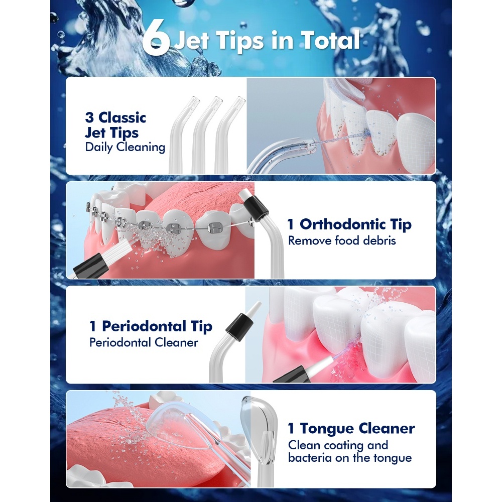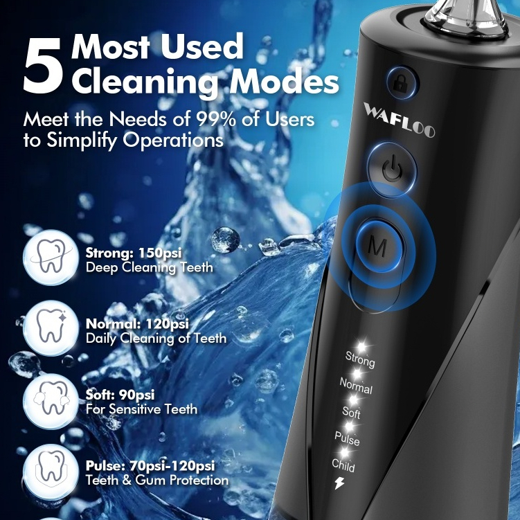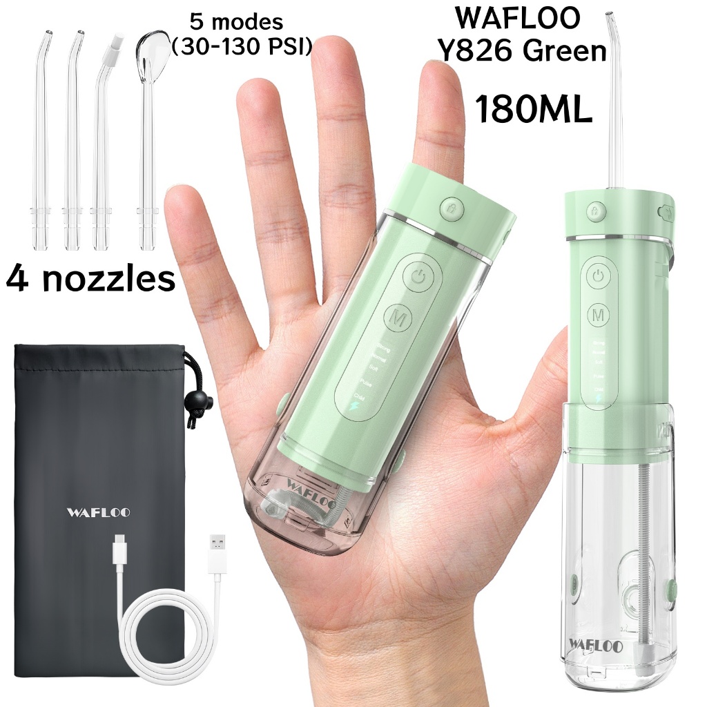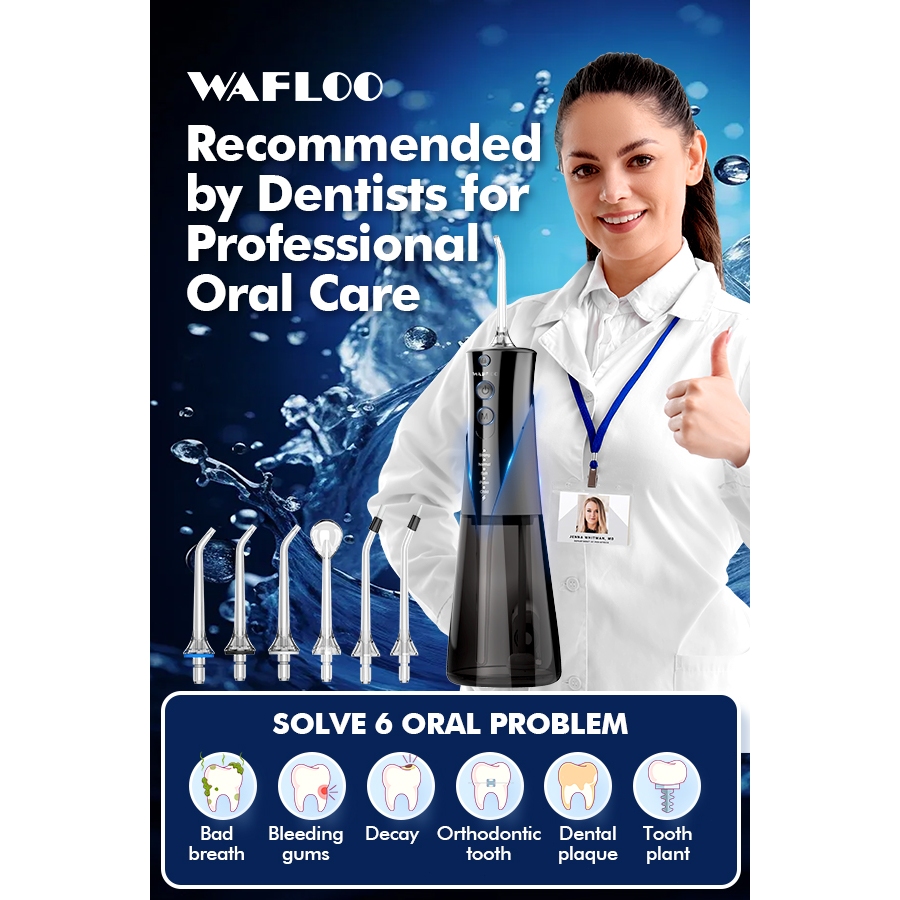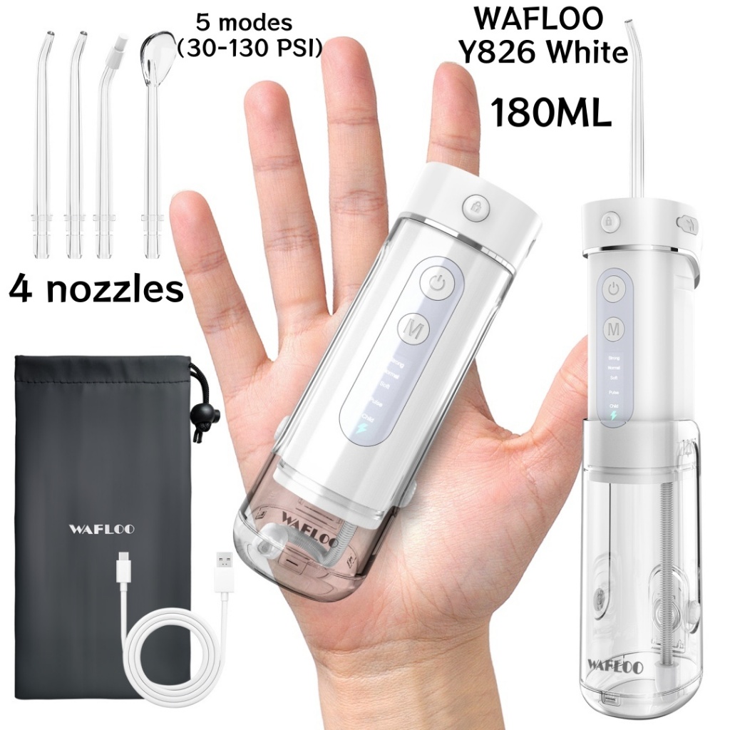 【COD】WAFLOO Y206 Water Flossers for Teeth - 5 Modes, 6 Flossing Tips, Rechargeable Cordless Portable 300ML Tank Cleaner IPX7 Waterproof Floss Cleaning Teeth Pick Dental Braces User