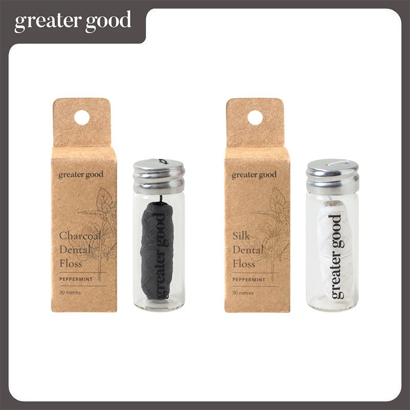 Greater Good - Silk or Bamboo Charcoal Biodegradable Dental Floss with Peppermint Flavornatural Dental Floss/