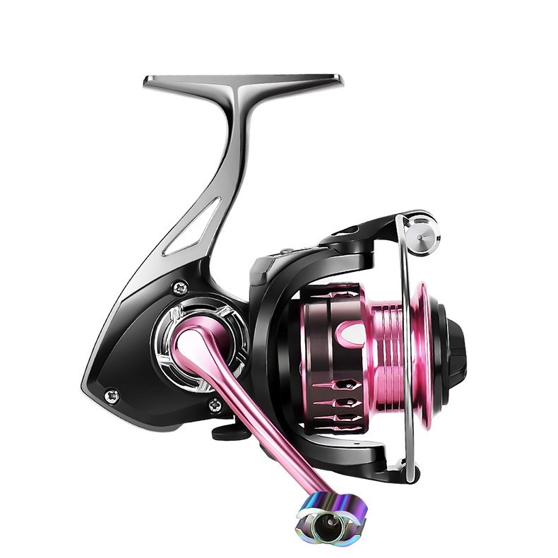 Mavllos Pink Metal Fishing Reel 14+1BB 5.2:1 10KG Max Drag Saltwater Spinning Reel Shallow Spool Reels for Ultralight Fishing
