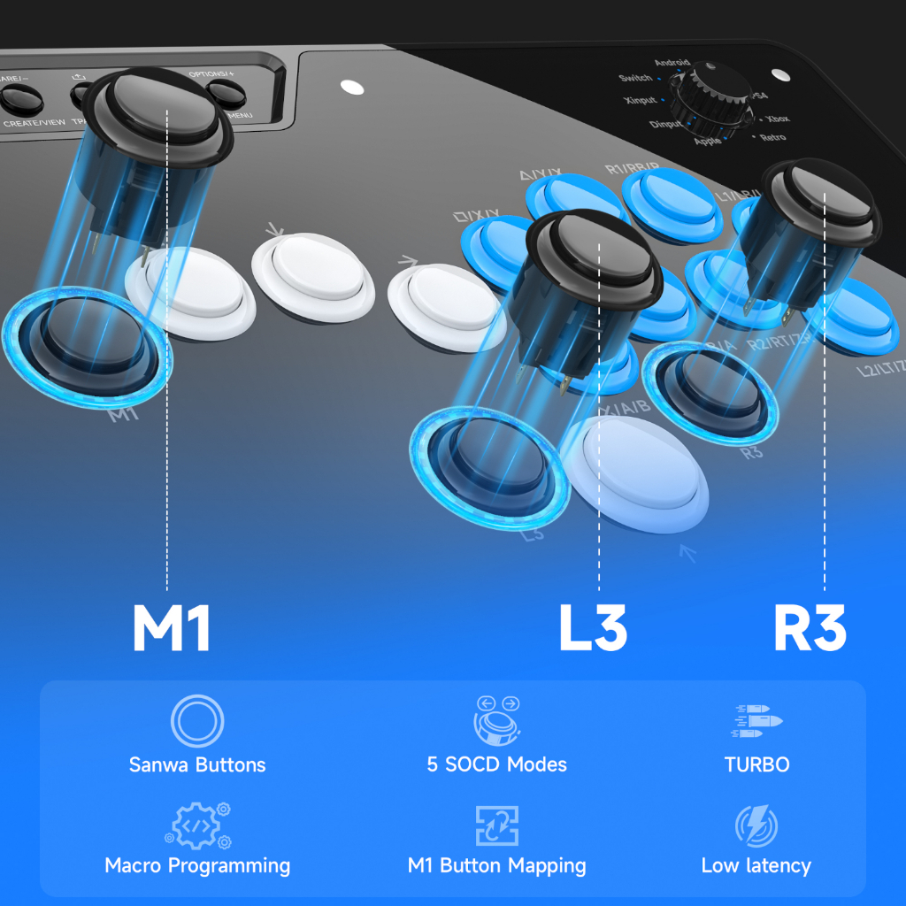 MayFlash F700 FLAT Elite Wireless Arcade Stick Leverless All Button Controller with Sanwa buttons for PS5/PS4/Xbox Series S|X/SwitchPC