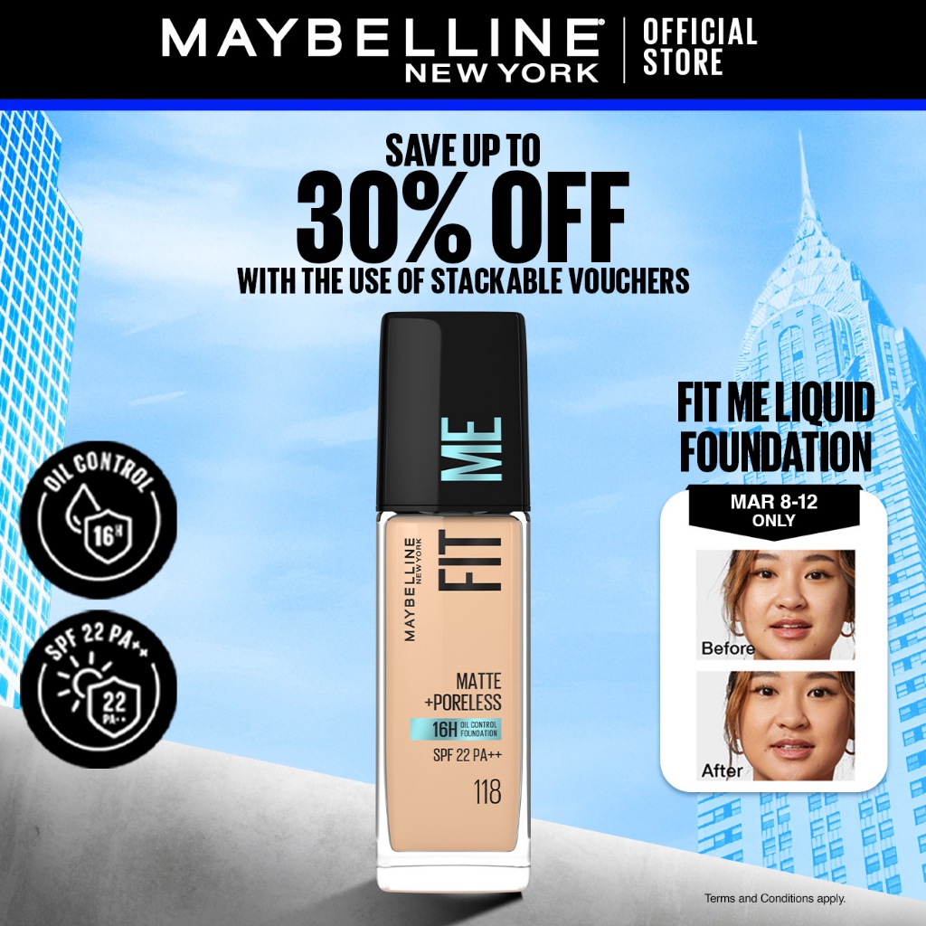 Maybelline Fit Me Foundation 16HR Long-Lasting, Oil Control, Natural Coverage, Matte, SPF22 PA+++