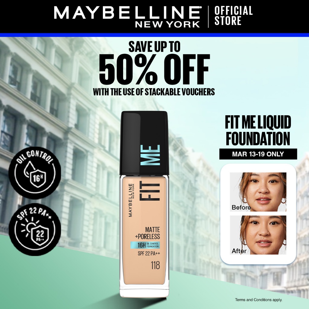 Maybelline Fit Me Foundation 16HR Long-Lasting, Oil Control, Natural Coverage, Matte, SPF22 PA+++