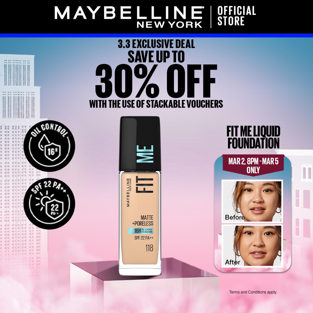 Maybelline Fit Me Foundation 16HR Long-Lasting, Oil Control, Natural Coverage, Matte, SPF22 PA+++