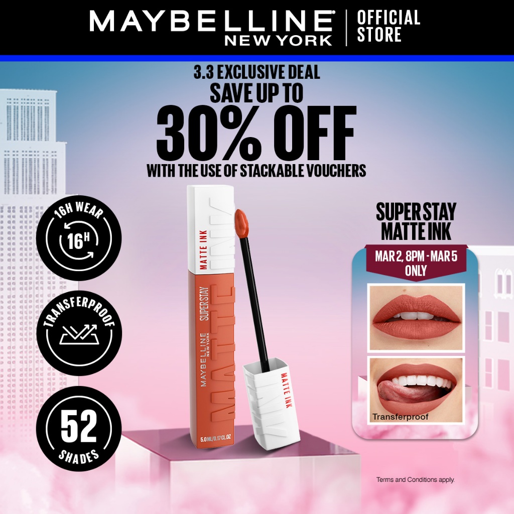 Maybelline SuperStay Matte Ink Liquid Lipstick 16HR Long-Lasting, Transferproof, High Pigment
