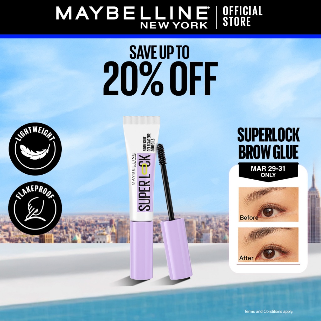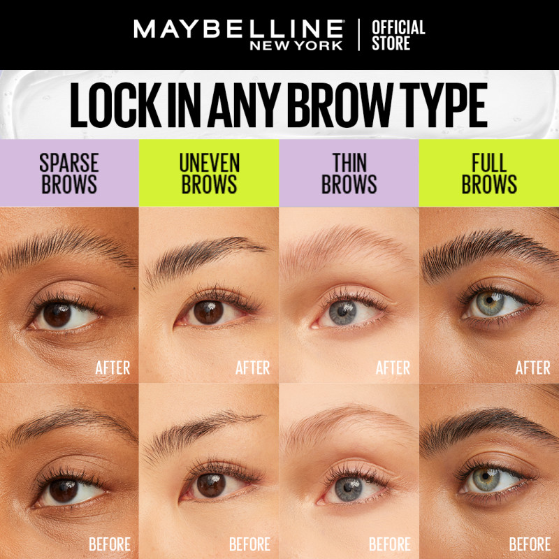 Maybelline Superlock Brow Glue 24H Long-Lasting, Clear Gel, Lightweight, Flakeproof, Non-Itchy