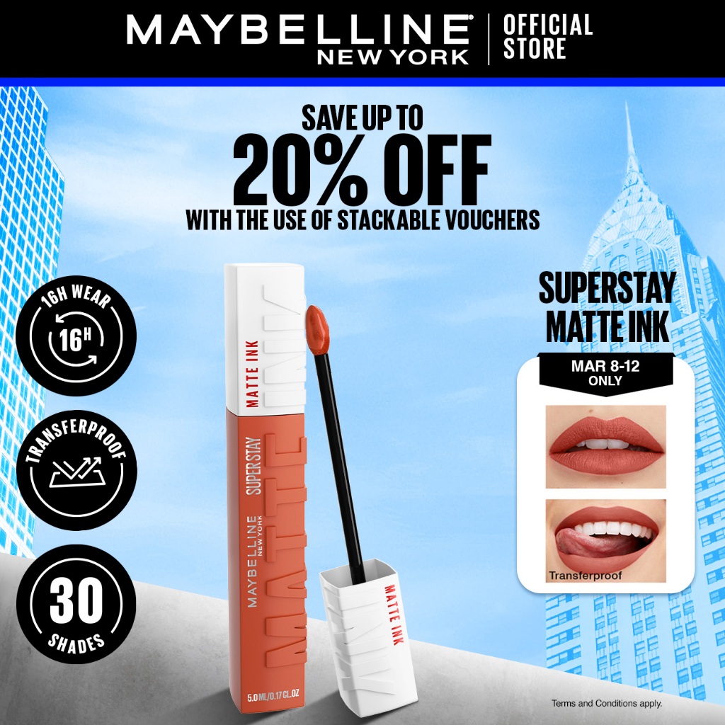 Maybelline SuperStay Matte Ink Liquid Lipstick 16HR Long-Lasting, Transferproof, High Pigment